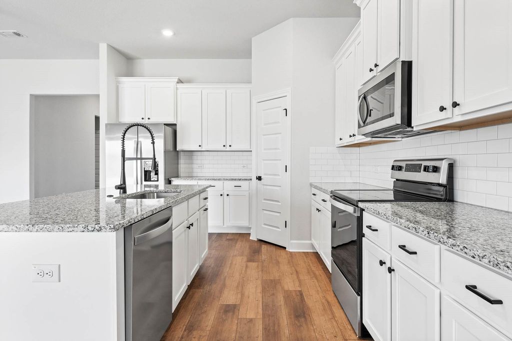 The spacious and inviting single-story Kendall plan at the top-tier master plan community, Whisper Valley, offers you the life you long for. As you make your way down the inviting foyer, you'll step into the main living area and can easily picture yourself relaxing with your family and hosting get-togethers with friends. Located directly off of the family room is the impressive kitchen, designed with aesthetic and functionality in mind. Take dinner outside onto the covered back patio, enjoying the summer sunsets and peaceful breeze. End each day in the private master suite that encompasses a spacious bedroom, luxurious master bath, and walk-in closet.