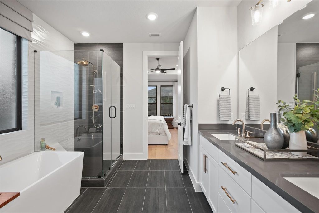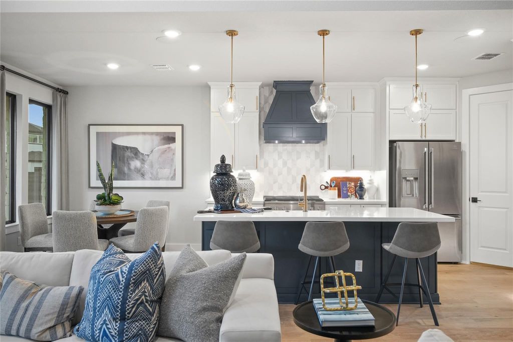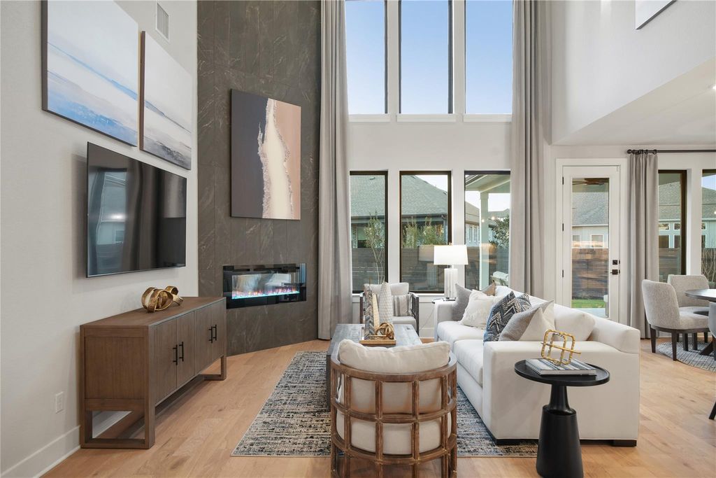 Newmark Homes' stunning model home in Provence is now for sale! Experience luxury living at its finest in this beautiful Koblenz floorplan located in the highly sought-after Provence community. This impressive two-story home showcases exceptional craftsmanship, high-end finishes, and thoughtful design throughout every space. Featuring 5 spacious bedrooms and 5.5 bathrooms, this home offers ample room for both relaxation and entertaining. The open-concept layout highlights a grand family room with soaring ceilings, tall, picturesque windows, and a beautiful fireplace that creates a warm and inviting atmosphere. The gourmet kitchen is a true showstopper, featuring quartz countertops, designer cabinetry, stainless steel appliances, and a large center island perfect for gatherings. A separate caterer's kitchen adds even more functionality, ideal for hosting and meal prep. Upstairs, enjoy the ultimate entertainment spaces with a large game room and private media room perfect for movie nights and family fun. The formal dining room provides an elegant setting for dinner parties and special occasions. Retreat to the luxurious primary suite, complete with a spa-like bathroom featuring a drop-in soaking tub, walk-in shower, and expansive closet. Every detail in this home has been thoughtfully curated with designer upgrades, from the flooring and fixtures to the custom lighting and trim work. Situated on a beautifully landscaped lot in the scenic Provence community, residents enjoy Hill Country views, resort-style amenities, and excellent Lake Travis ISD schools. Don't miss out on this stunning residence that perfectly blends sophistication, comfort, and style. Call Tina for more information!