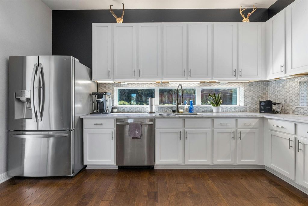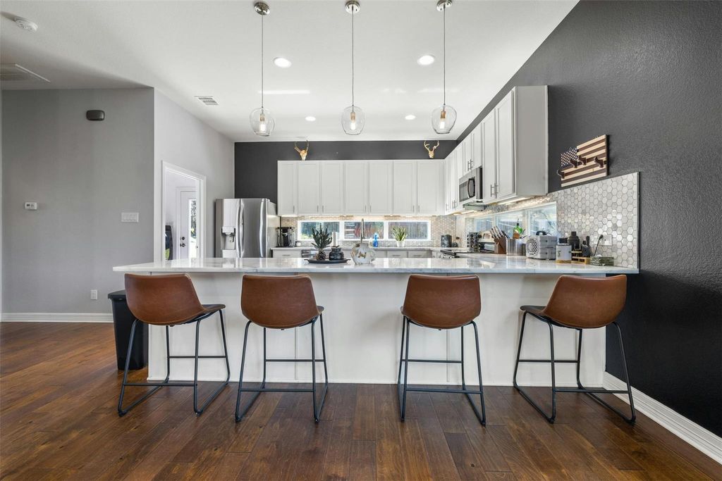 Nestled in the sought-after Briarcliff community of Spicewood, this charming home sits on a spacious 1/3-acre lot, offering timeless elegance and modern comfort. With a thoughtful floor plan, you'll find two bedrooms on the main level and two more upstairs, perfect for family, guests, or flexible living. Inside, custom details shine through with rich wood flooring, crown molding, and distinctive designer wallpaper. The heart of the home is the gourmet kitchen featuring marble countertops, stainless steel appliances, and a seamless flow into the cozy living area, ideal for both entertaining and everyday living. The primary suite is a true retreat with a spa-like ensuite bath, complete with a deep soaking tub, separate shower, and expansive walk-in closet. Community amenities elevate the lifestyle, including hiking and biking trails, a neighborhood park, private marina access on Lake Travis, and a nine-hole golf course. Located within the highly regarded Lake Travis ISD, this home is the perfect balance of comfort, convenience, and community.