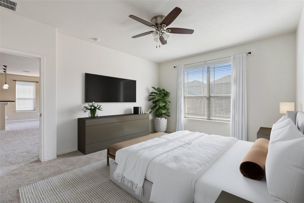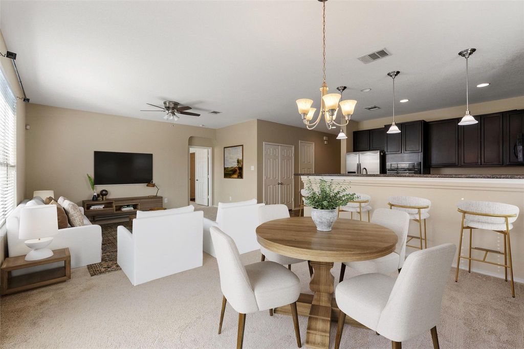 Located on a quiet street in Pflugerville, 913 Oatmeal Drive offers a well-rounded opportunity that suits both everyday living and long-term value. The brick exterior and welcoming entry set the tone for a home designed with comfort, durability, and flexibility in mind. Inside, the layout is straightforward and functional, centered around a bright main living area that easily supports family life, entertaining, or work-from-home routines. The kitchen provides generous cabinet and counter space, and a natural connection to the dining and living areas - ideal for busy mornings, shared meals, and casual gatherings. The primary bedroom is thoughtfully positioned and features an en-suite bath with dual vanities and a spacious walk-in closet. Additional bedrooms offer versatility for kids' rooms or guest space allowing the home to adapt as needs change over time. Flex space is perfect for an office or play area. Out back, the fenced yard provides room to play, relax, or personalize with outdoor seating or garden space. It's a manageable, usable yard that complements daily life without feeling overwhelming. With close proximity to schools, parks, shopping, and dining, this location supports an active, connected lifestyle while maintaining a true neighborhood feel. Whether you're looking for a place to settle in or a property with strong long-term appeal, 913 Oatmeal Drive presents an opportunity that balances livability and lasting value.