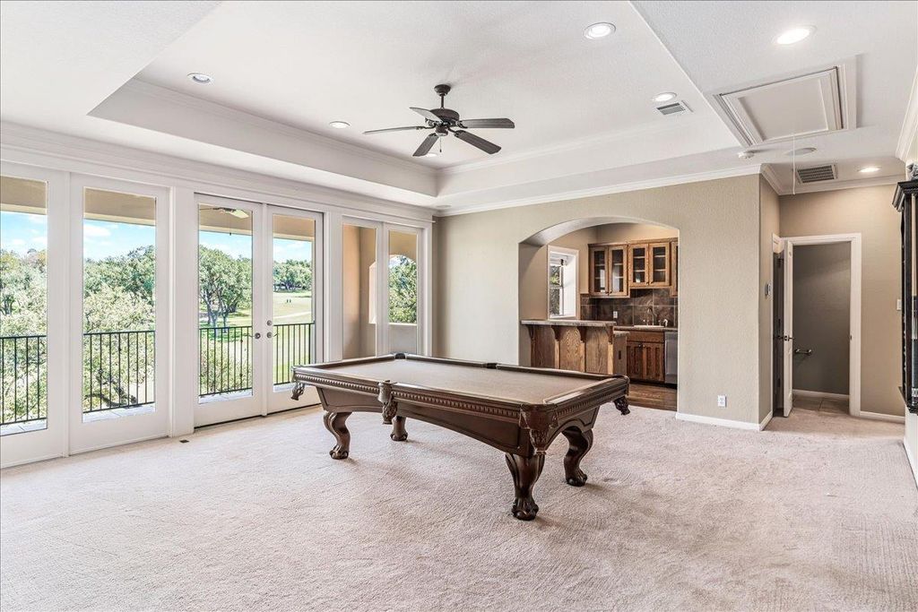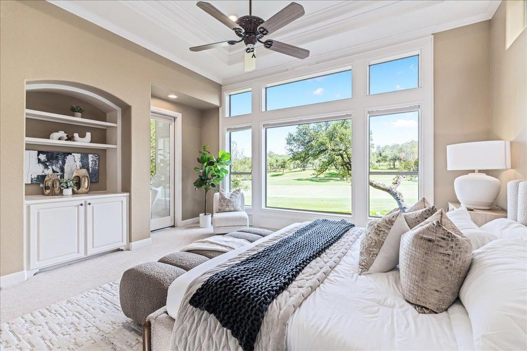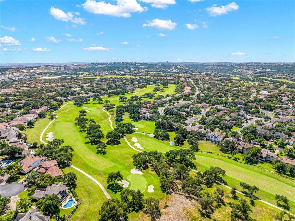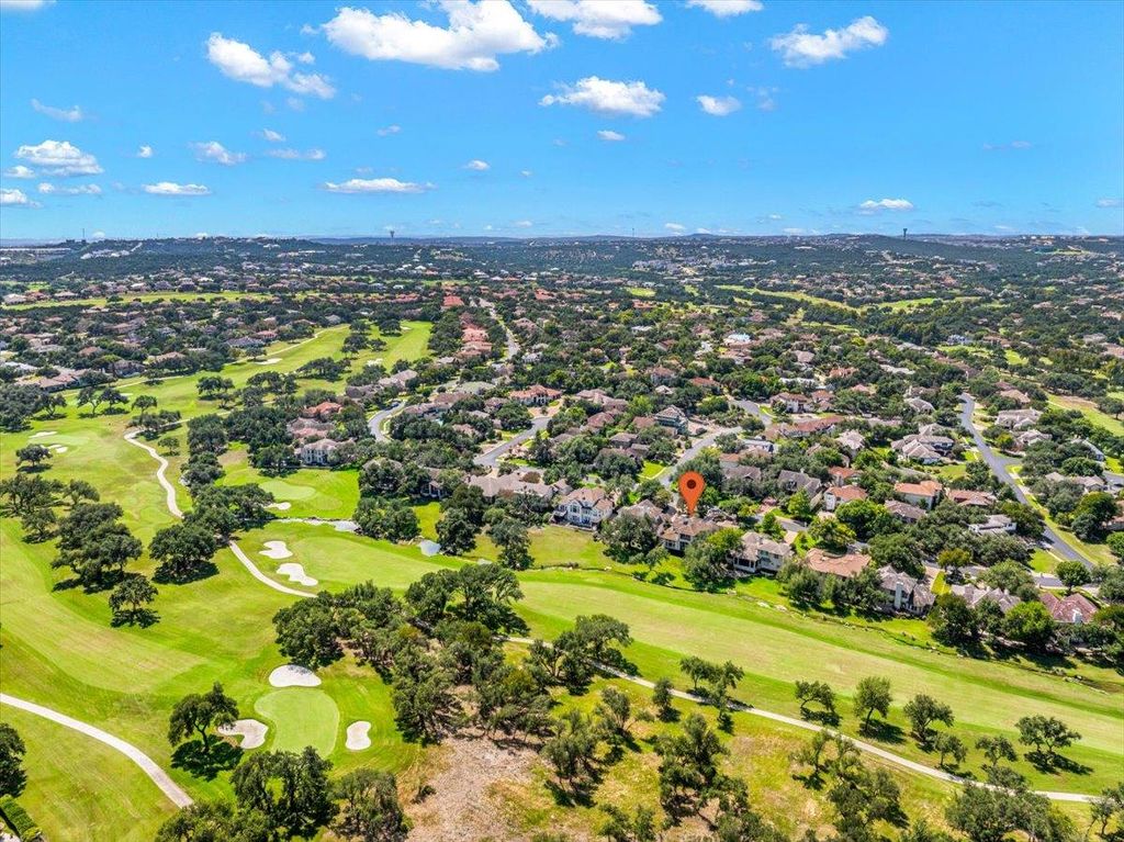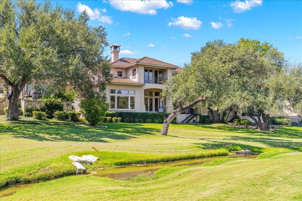 Experience refined Hill Country living in this custom Alberto Jauregui-designed home perfectly positioned on the 1st fairway of The Hills Signature Golf Course. With sweeping views from nearly every room, this residence combines timeless craftsmanship with resort-style neighborhood amenities. Inside, you'll find soaring coffered ceilings, rich oak hardwood and tile floors, and walls of windows that frame the scenic golf course. The spacious kitchen features a large island, abundant cabinetry, and excellent flow to the living and dining areas, offering plenty of potential for your personal touch. The primary suite overlooks the course with private patio access, a spa-like bath with a dual-head walk-in shower, jetted tub, and custom closet. Upstairs, enjoy a full game room with kitchenette, a dedicated media room, and a balcony overlooking the lush fairway. Outdoor living takes center stage with a kitchen, stone fireplace, and expansive patios designed for year-round gatherings. A 3-car garage with workshop and built-in cabinetry completes this rare offering. LTISD Schools and LOW TAXES! Life in The Hills includes access to four premier clubs"”The Hills, Flintrock, Live Oak, and Yaupon"”offering championship golf, tennis, swimming, fitness, dining, and a vibrant calendar of community events. Residents also enjoy private amenities like a playground, dog park, sport court, and scenic walking paths. *Buyer to independently verify all info including but not limited to square footage, restrictions, taxes, schools, HOA dues, year built, etc.