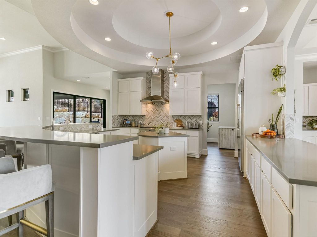 Located in the prestigious Estates of Flintrock, this elegant 4,417 sq. ft. residence offers a seamless blend of luxury, comfort, and functionality. Designed for effortless living, this open-concept home lives like a single-story, with only a spacious Media/Game Room on the upper level. Unparalleled Design & Comfort At the heart of the home, the chef-style gourmet kitchen includes an expansive breakfast bar, high-end stainless steel appliances, and designer finishes, making it an entertainer's dream. The flowing layout allows for effortless movement between the living room, den, dining area, and covered patio, ensuring you stay connected"”whether hosting guests or enjoying family time. Exceptional Living Spaces - 4 Bedrooms | 4.5 Bathrooms - Spacious and thoughtfully designed - Dedicated Study & Home Workstation - Ideal for remote work and productivity - Media/Game Room - A private retreat on the upper level Serene Outdoor Escape Situated on over half an acre in a tranquil cul-de-sac, the tiered backyard presents an unparalleled opportunity to create an incredible outdoor entertainment space. Imagine custom landscaping, an expansive patio, or a luxurious pool"”don't miss the video rendering showcasing this vision! Prime Location & Top-Rated Schools Located in the acclaimed Lake Travis ISD, this home is just minutes from premier shopping and dining at Hill Country Galleria, with easy access to downtown Austin and Austin-Bergstrom International Airport (ABIA). This is an exceptional opportunity to own a sophisticated estate in one of Austin's most coveted neighborhoods. Schedule your private tour today!
