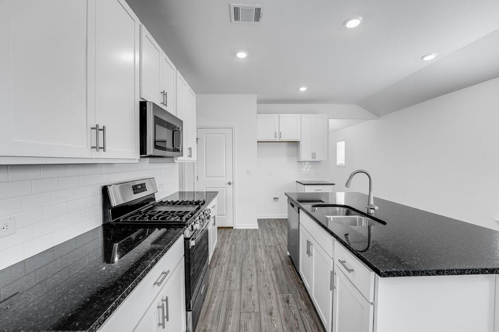 What's Special: Exclusive Savings | New Floor Plan | Single Level Living. New Construction - Ready Now! Built by Taylor Morrison, America's Most Trusted Homebuilder. Welcome to the Eller at 14217 Matterod Drive in Longview. Live comfortably in this thoughtfully designed single-story home. Enter through the two-car garage to find a convenient drop zone and laundry room"”perfect for busy days and outdoor adventures. Toward the front of the home, two secondary bedrooms and a full bathroom offer flexibility and comfort for guests or family. Step through the front porch and into a bright foyer that opens to beautiful open-concept living. The kitchen features a central island and flows effortlessly into the dining area, great room, and covered patio"”ideal for everyday living and weekend entertaining. Tucked away at the back of the home, the serene primary suite includes a spacious walk-in closet and a private bath with dual sinks and a large shower. At Longview, lifestyle amenities are just the beginning. Planned features include a sparkling pool, pickleball courts, playscapes, lush trails, parks, and a welcoming Amenity Center designed for connection and fun.