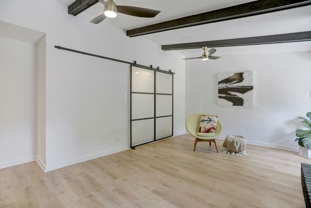 This stunning home has been thoughtfully reimagined from the studs to the details, blending modern design with timeless charm. It is tucked away on a quiet cul-de-sac in the highly sought-after Quail Creek neighborhood, walking distance to Cook Elementary and just minutes from Q2 Stadium, the North Austin tech hub, Apple, and The Domain. Bright and spacious, this 3-bedroom, 2-bathroom gem features two living areas, a dedicated office, an interior laundry room, and a two-car garage. From the moment you step onto the covered front porch, you're welcomed by fresh, mid-century modern-inspired finishes. The open kitchen features a breakfast bar, ample storage, and a large pantry, complemented by luxe gold accents, stainless steel appliances, a double oven, refrigerator, soft-close cabinetry, an under-mount sink, and stylish luxury vinyl plank flooring. The vaulted ceilings, oversized windows, and elegant archways fill the living and dining areas with natural light, while statement chandeliers add a touch of glamour. A cozy fireplace anchors the second living area, complemented by a peek-through window to the kitchen"”ideal for entertaining or unwinding. Both bathrooms showcase modern black and gold finishes, warm wood accents, custom tilework, and skylights that enhance the light and airy vibe. The primary suite includes a dual-sink vanity, a walk-in shower with floor-to-ceiling tile, a modern ceiling fan, and two generous closet spaces. The secondary bedrooms feature similar upgrades and share a striking full bath with designer details. This completely transformed home offers the perfect blend of comfort, function, and style in one of North Austin's most convenient locations.