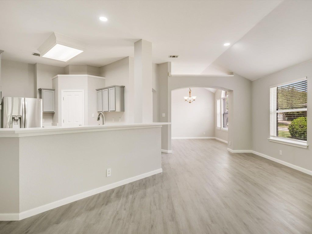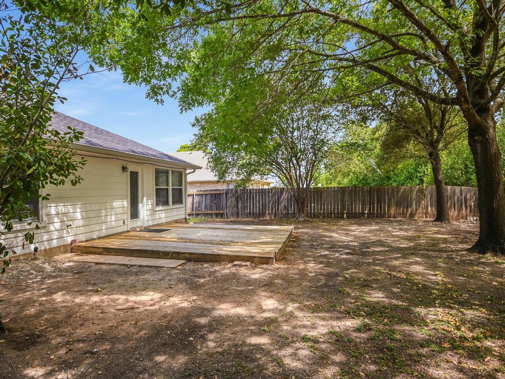 This move-in ready home combines thoughtful updates, a spacious layout, and an unbeatable location! Backing directly to a wooded greenbelt and the scenic Pfairways Hike & Bike Trail, you'll enjoy peaceful views with the assurance that nothing will be built behind you. Trail access is just one house over, and you're steps from Pflugerville Park with its playgrounds, fields, and recreation. Plus, you can stroll to the historic Pecan Street district - featuring boutique shops, local restaurants, pubs, and cozy coffee spots. Recent updates include a new roof and foundation leveled with a transferable lifetime warranty, ensuring peace of mind for years to come. Inside, the bright and open floor plan offers fresh flooring, vaulted ceilings, and plenty of natural light. The kitchen shines with stainless steel appliances, ample cabinet space, and a breakfast bar that flows into the dining and living areas. Washer, dryer, and refrigerator convey, making your move even easier! The backyard retreat features mature trees, a wooden deck for entertaining, and a storage building for all your extras. Located on a quiet cul-de-sac with no through traffic, this home offers a welcoming neighborhood feel with both privacy and convenience. With tons of great updates and a walkable lifestyle surrounded by nature and amenities, this home is a true Pflugerville gem!