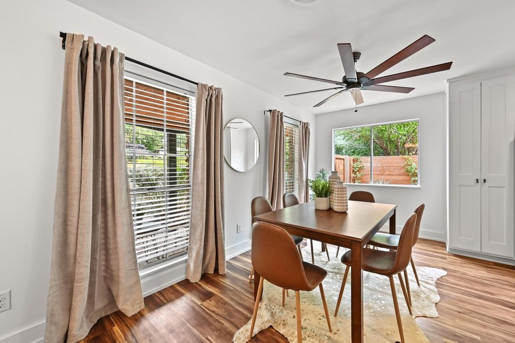East Austin three bedroom, 2 bathroom home on almost a quarter acre with loads of character and an updated interior. Featuring hardwood floors, high ceilings, and abundant natural light, this 1,826 sq ft residence offers an updated kitchen with stone countertops and a vast central island. The main floor bedroom adds convenience, while the open living area offers an easeful space for entertaining and relaxing. The large backyard features mature trees and a covered porch. Minutes to downtown, The Ladybird Hike and Bike Trail, SoCo, and close to East Austin's dining and coffee shops. The roof is only one year old! There is an option for the loan to be assumable, VA loan @2.5%!