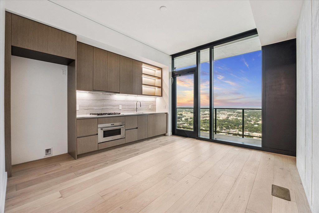 Be among the first to live in The Modern Austin Residences, Downtown Austin's newest premier condo tower. This beautifully designed home showcases floor-to-ceiling windows, soaring 10'4" ceilings, and a private balcony with sweeping east-facing views, perfect for capturing breathtaking sunrises over Lady Bird Lake. Designed with both elegance and functionality in mind, this residence includes a spa-like bathroom with ambient cove lighting, along with an in-unit washer and dryer for convenience. Residents enjoy access to world-class amenities, including a 25-meter pool and spa, state-of-the-art fitness center, yoga studio, sky lounge, co-working spaces, and 24/7 concierge services. Ideally located in the Rainey Street District, this home places Austin's best dining, nightlife, and outdoor recreation just outside your door.