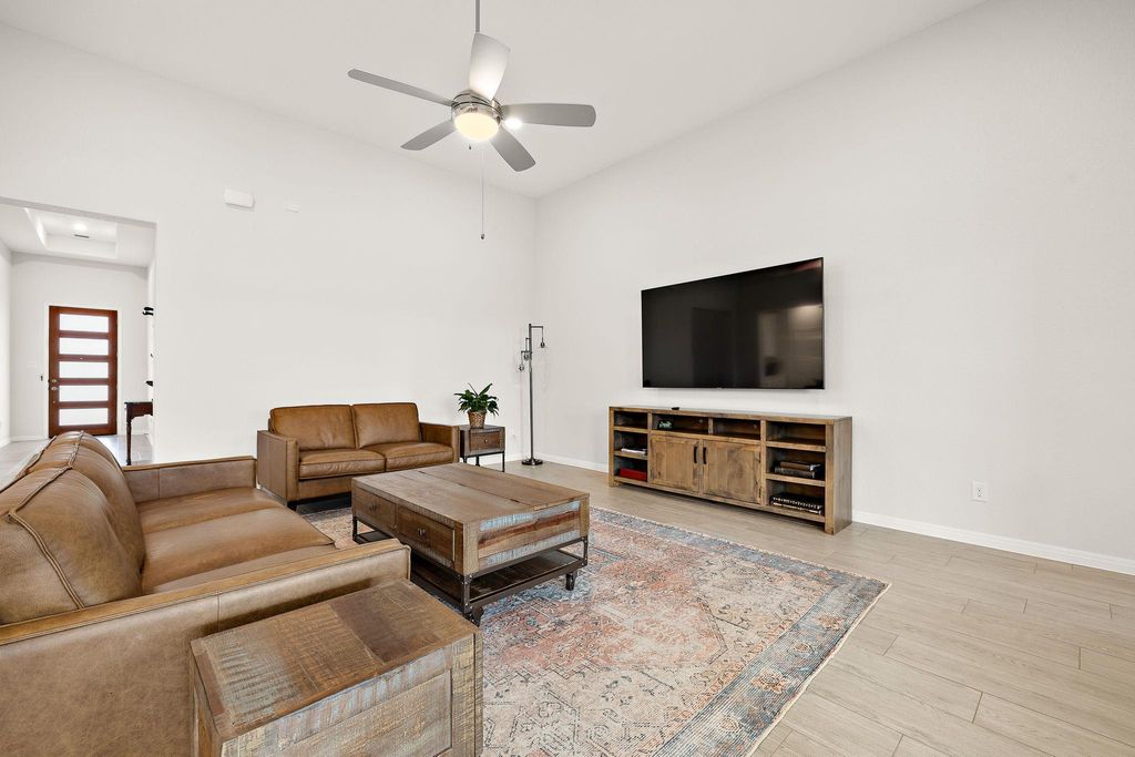 Fantastic home in Pflugerville's desirable Carmel West community, offering an exceptional floorplan, prime location, and the rare opportunity to assume a VA loan at just 2.75%! This almost-new, better-than-new construction is full of natural light and features high ceilings, an open layout with the kitchen flowing seamlessly into the living and dining spaces "” perfect for entertaining. The thoughtfully designed floorplan includes spacious living areas, a bright and inviting kitchen, and plenty of room to host family and friends. The backyard is great for BBQs and gatherings, with space to relax and enjoy. Located near Samsung and convenient to major employers, shopping, and dining, this home also feeds into the highly regarded Carpenter Elementary. With its move-in-ready condition, modern finishes, and low-rate assumable loan, this home is a rare find in Carmel West!