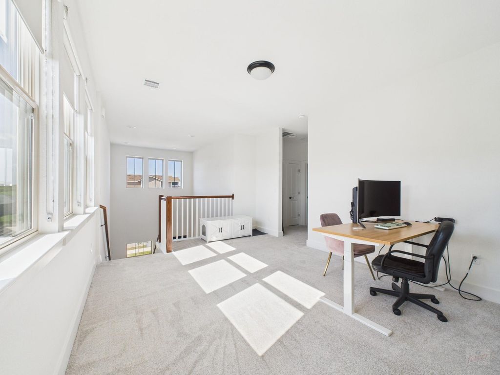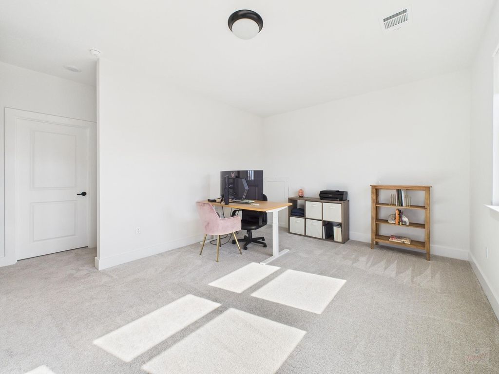 This house is one of the few that backs up to the greenbelt with NO BACKYARD NEIGHBORS. This is one of our newest floor plans, the Quincy. It has a primary bedroom down and two bedrooms plus a loft upstairs. The loft space is large enough for a Game Room. Great floor plan for entertaining with an open concept. This plan includes a covered patio with a nice sized backyard. Enjoy the many parks, trails, fabulous resort-style pool and state-of-the-art fitness center. Conveniently located near the airport, Tesla factory and just 12 miles from Downtown. Come visit Easton Park today!