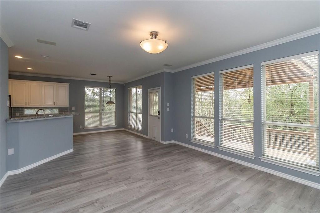 Beautifully updated 4 bedroom home backs to greenbelt with no carpet. Gorgeous luxury vinyl plank flooring throughout. Multi-level deck backs to greenbelt with city views. Updated primary bath. Granite counters in kitchen and baths, SS apron sink and appliances. 4 living areas with formals. Lots of windows in family for light and greenbelt views.