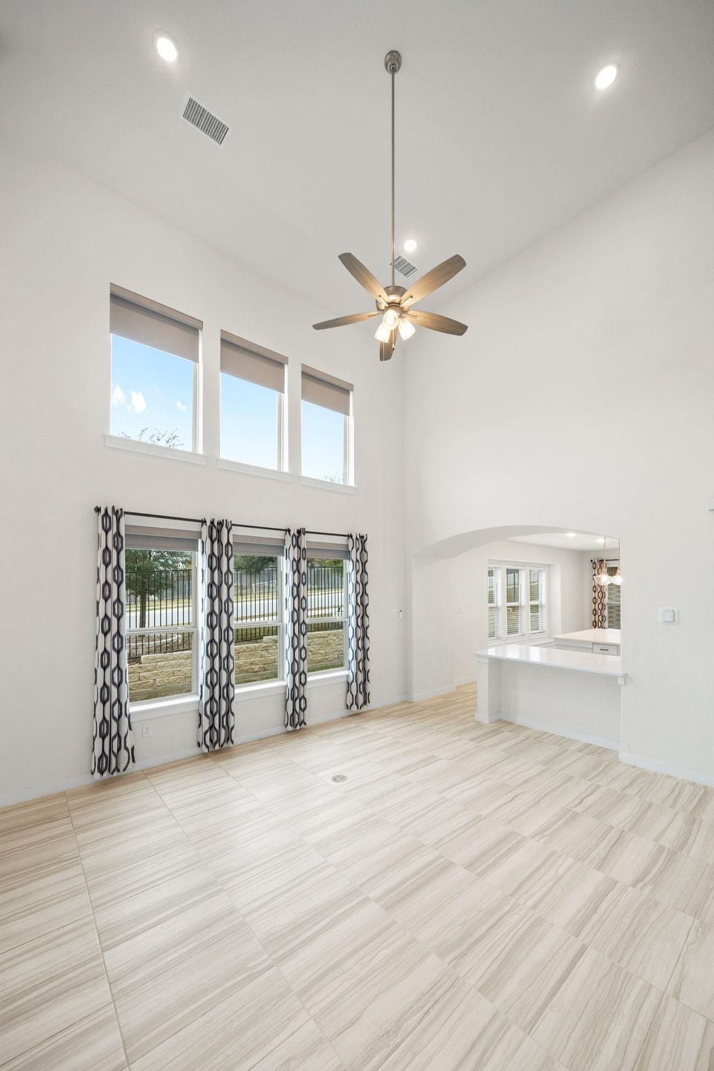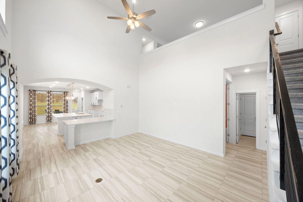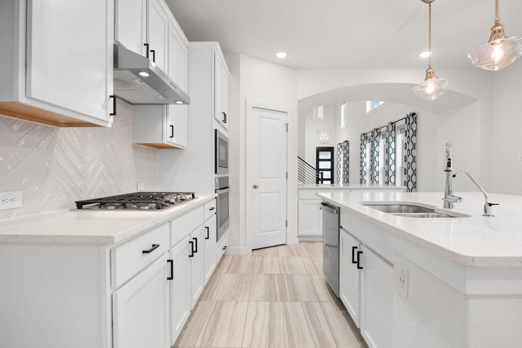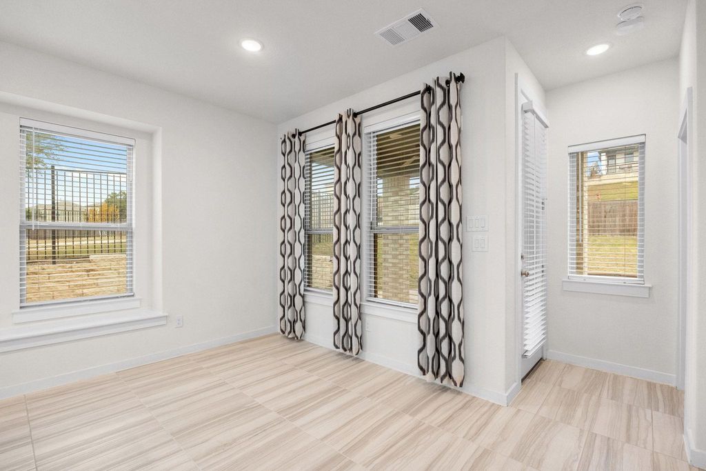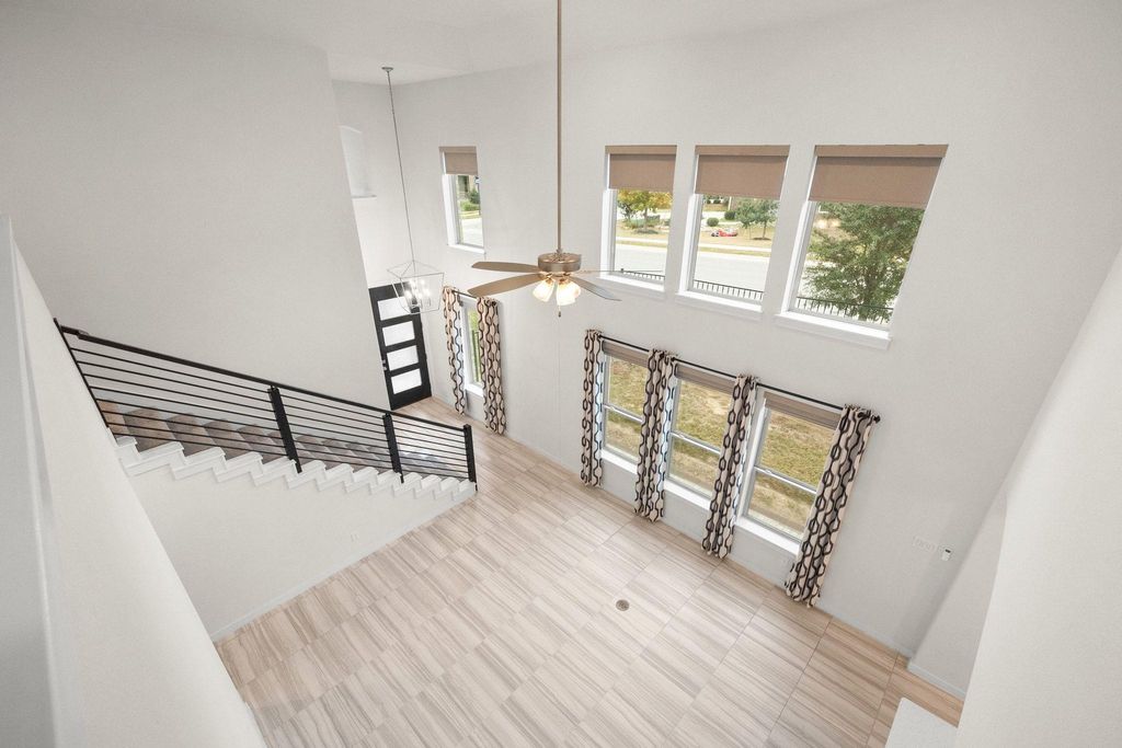 Welcome to 8119 Prairie Rye Drive, a modern retreat in the coveted Lakeside at Tessera on Lake Travis community. This spacious home sits on a generous 1/3-acre corner lot, offering enhanced privacy, ample yard space, and curb appeal. Step into your own outdoor oasis with a recently extended paver patio (updated July 2025), complete with a circular fire pit - perfect for evening gatherings under Texas' breathtaking sunsets. Inside, soaring high ceilings and expansive large windows flood the open-concept layout with natural light, creating an airy, inviting atmosphere. The main level features elegant tile flooring throughout, a gourmet kitchen boasting premium granite/quartz countertops, white shaker cabinets, a large island with pendant lighting, and top-of-the-line stainless appliances. Adjacent is a versatile downstairs room that serves as a dedicated office or could easily convert to a 4th bedroom. The primary living area seamlessly flows to the dining space, ideal for entertaining. Upstairs, discover a second living room, complete with fresh new carpet (installed October 2025) for cozy movie nights or playtime. The three bedrooms include a primary suite with spa-like en-suite bath, plus striking accent walls adding a touch of contemporary flair. With 2.5 baths total, energy-efficient windows and doors, and a tankless water heater, this home combines style, comfort, and low-maintenance living. Nestled in Lakeside at Tessera on Lake Travis, enjoy resort-style amenities including an infinity-edge pool with waterfall features and sun deck, clubhouse, sports courts, playground, park, miles of scenic hiking and biking trails, over a mile of private shoreline, a resident-only boat launch, and a private beach area. Proximity to Lake Travis means easy access to boating, fishing, and water adventures. This home's prime location, modern updates, and community perks make it a rare gem!