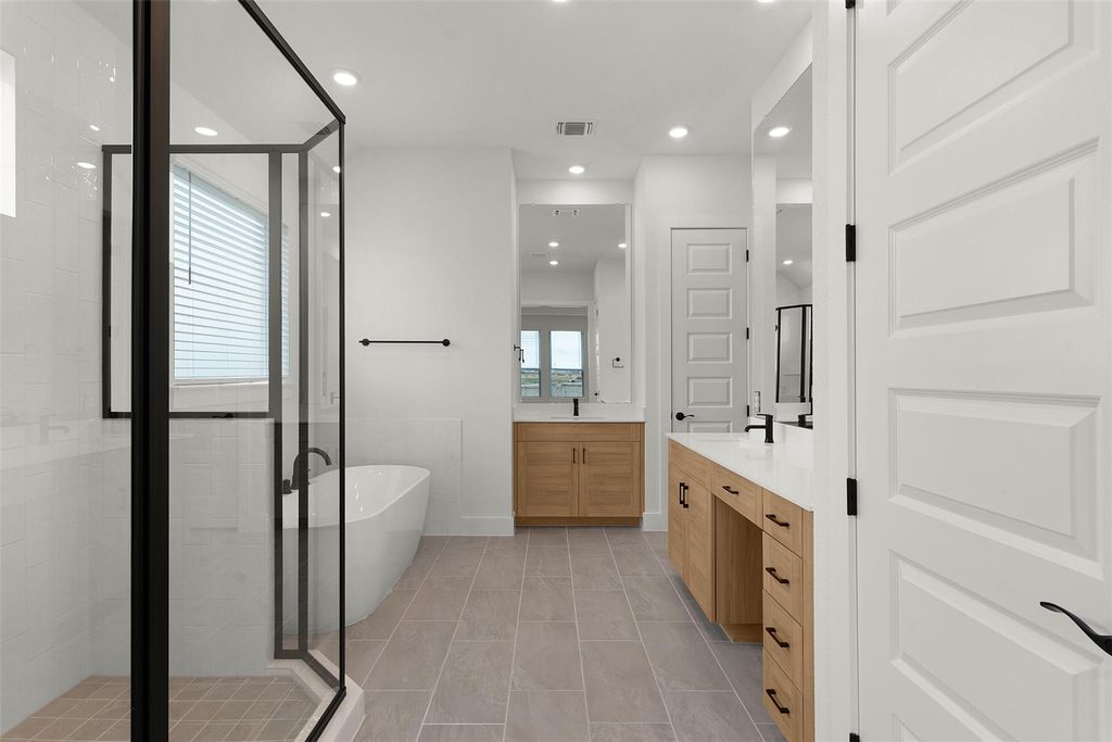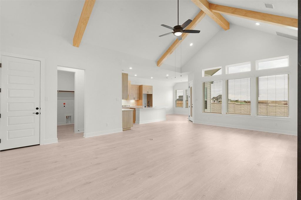 MOVE IN READY | 3 Beds | 2.5 Baths | Study | 1-Story | 3-Car Garage | 2,323 Sq Ft | 60' Lot | Meet The Farris"”the ultimate one-story layout with 3 bedrooms, 2.5 bathrooms, a private study, and a split 3-car garage that gives you the storage space you've been manifesting. At 2,323 square feet, this home blends open-concept living with just the right amount of privacy and function for real life. Step inside to find French doors leading to the study (with its own closet"”hello, potential guest room or craft cave). Keep going and you'll find yourself in a wow-worthy family room, complete with pine beamed vaulted ceilings and a floor-to-ceiling porcelain electric fireplace that's as cozy as it is Instagrammable. The kitchen is equal parts beauty and utility with a large center island (pop-up outlet included), quartz countertops, a walk-in pantry, and cabinets with soft-close doors and drawers topped off with matte black hardware. 12" LED under/over cabinet lighting gives it that custom glow-up, while the adjacent dining area makes everyday meals and hosting feel seamless. The primary suite is a dream in the back of the home with tray ceilings, tons of windows bringing in natural light, and double doors leading to a luxurious ensuite: two separate vanities, an oversized walk-in shower, soaking tub, and a massive walk-in closet built for serious wardrobe goals. Bedrooms 2 and 3 share a Jack-and-Jill bathroom with dual sinks, making school mornings that much smoother. A mud bench off the garage keeps backpacks, diaper bags, and daily chaos in check. Additional highlights include matte black plumbing fixtures throughout, LVP, carpet, and tile flooring, exterior coach lighting, and a covered patio ready for fall hangs. The Farris is move-in ready"”and yes, it's giving main character energy in all the best ways. Visit our brand-new model home and ask about our current buyer incentives!