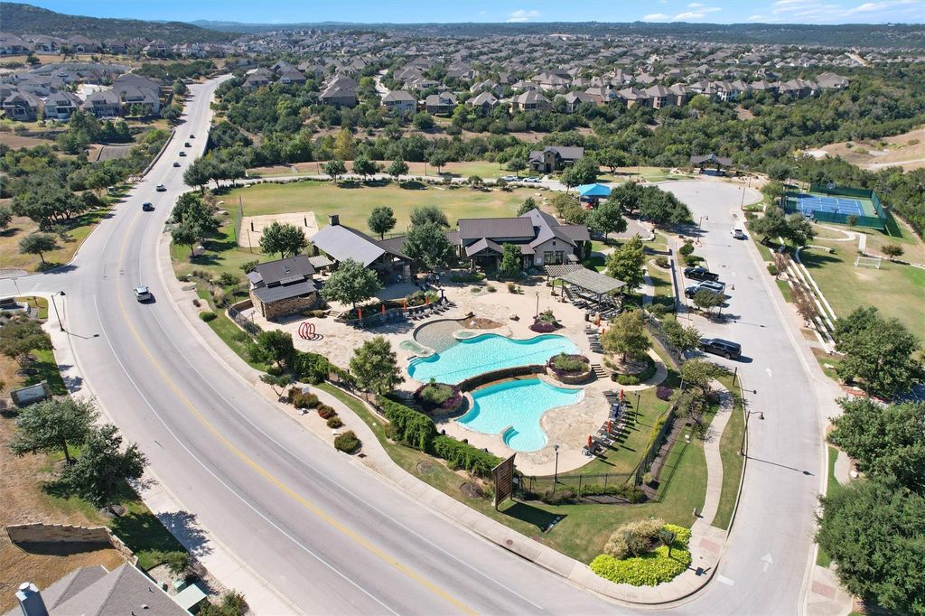 Step into elegance with this stunning 4-bedroom, 3.5-bath home featuring Westin's signature rotunda entry and soaring ceilings that make a dramatic first impression. Natural light floods the expansive family room through floor-to-ceiling windows, creating a bright, inviting atmosphere throughout. This thoughtfully designed layout offers a formal dining room, private office, spacious game room, and dedicated media room"”plenty of space for both entertaining and everyday living. The gourmet kitchen is a chef's dream, complete with a large center island, breakfast nook, and abundant cabinetry. Retreat to the luxurious primary suite featuring a charming bay window, spa-like bath with soaking tub and separate shower, and an oversized walk-in closet. Secondary bedrooms are generously sized, with ample storage and well-appointed baths. Located in Sweetwater, one of West Austin's premier master-planned communities, residents enjoy resort-style amenities including a pool, gym, clubhouse, and miles of scenic trails. Zoned to top-rated Lake Travis ISD schools, this home offers the perfect blend of luxury, comfort, and lifestyle.