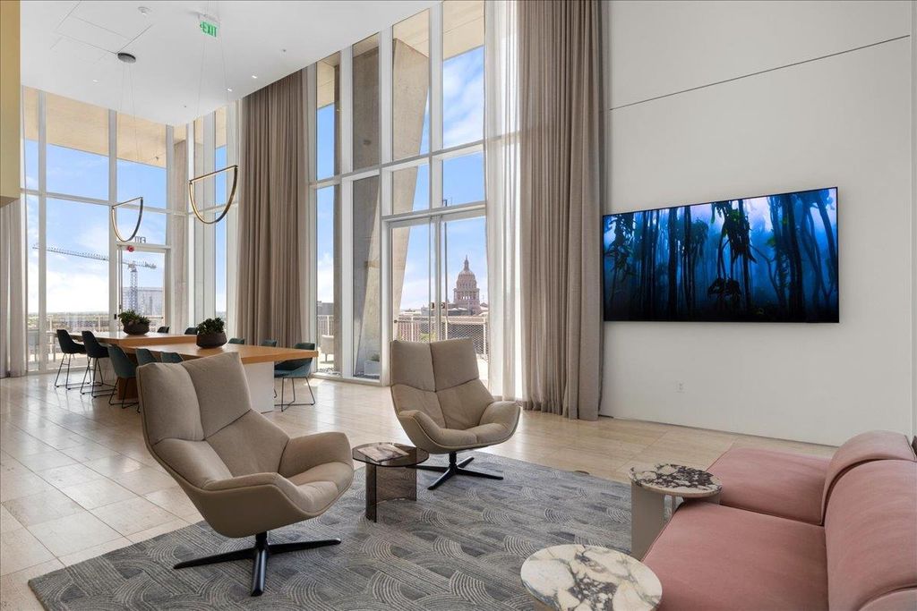 Residence #1204 at The Linden presents a rare opportunity to own one of the building's most distinguished condominium homes in the heart of downtown Austin. This exceptional residence is being thoughtfully introduced to the market with an emphasis on transparency, accessibility, and broad buyer engagement. This spacious residence features a well-designed layout enhanced by expansive floor-to-ceiling windows that frame sweeping views of the Austin skyline and surrounding cityscape. The open-concept living and dining areas are finished with wide-plank hardwood flooring and flow seamlessly into a modern, chef-inspired kitchen equipped with a premium Bosch appliance suite, quartz countertops, custom cabinetry, and refined finishes throughout. The primary suite offers a comfortable retreat with a spa-style bathroom featuring dual vanities, a frameless glass shower, premium tilework, and a generous walk-in closet. A secondary bedroom provides flexible use as a guest suite, home office, or additional living space to suit a variety of lifestyle needs. Additional conveniences include two assigned parking and secured on-site storage. Residents enjoy 24-hour concierge service and building security, offering controlled access and on-site support for daily living. All offers will be reviewed by the seller in accordance with standard market practices. The seller reserves the right to accept, reject, or negotiate any offer at their sole discretion. Ideally located near the University of Texas, the Capitol district, major employment centers, medical corridors, and Austin's growing mix of dining, cultural, and entertainment destinations, The Linden delivers refined urban living in one of the city's most desirable locations.