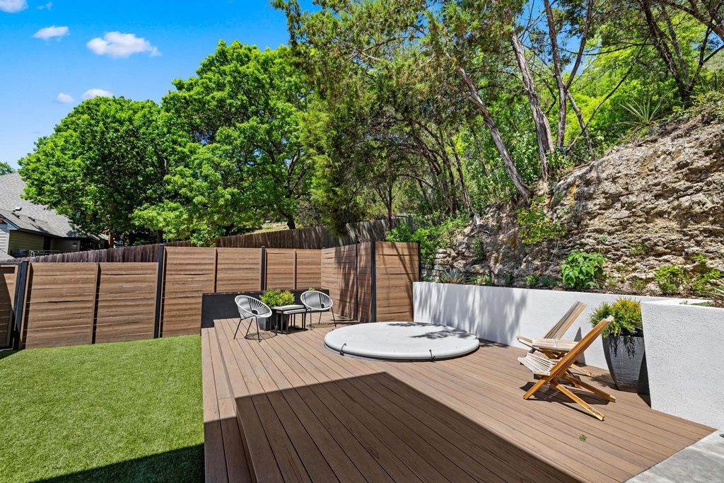 Nestled on a tranquil private street with no neighbors in front or behind, this home is a rare offering"”providing complete seclusion while being just 10 minutes from Austin. Upon arrival, a serene courtyard sets a tone of understated grandeur, inviting you into interiors where a floating staircase and floor-to-ceiling windows create a luminous, airy ambiance. The main living spaces flow effortlessly, blending architectural sophistication with effortless comfort. Designed for entertaining, the chef's kitchen features top-of-the-line appliances, dual ovens, two JennAir beverage refrigerators, a full-size wine fridge, expansive prep & gathering areas. Adjacent to the kitchen, multiple versatile rooms"”including two executive offices"”offer flexibility for a home gym, fifth bedroom, or scullery.?The primary suite is a true private retreat, occupying a quarter of the upper level. A spacious sitting area with a fireplace offers warmth & elegance, while the spa-inspired bathroom, expansive custom walk-in closet, and boutique-style shoe closet create an atmosphere of true luxury & tranquility.?Additional features include a detached garage apartment with a private entrance, kitchenette, full bath"”ideal for guests, family, or live-in staff. New windows & doors throughout, upgraded insulation, all-new AC ductwork, with multiple climate zones ensure exceptional energy efficiency. A full-home Generac natural gas generator, Lutron smart lighting, & electric blinds further enhance convenience and peace of mind. Step outside to your personal resort-style oasis, complete with a full outdoor kitchen, entertainment area, industrial fans with misters, & cowboy soaking pool surrounded by custom decking. Privacy fencing and lush turf landscaping, including a discreet pet run, make outdoor living effortless and inviting. Experience the pinnacle of privacy, luxury, & location in one of Austin's most desirable neighborhoods.