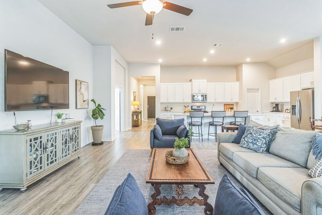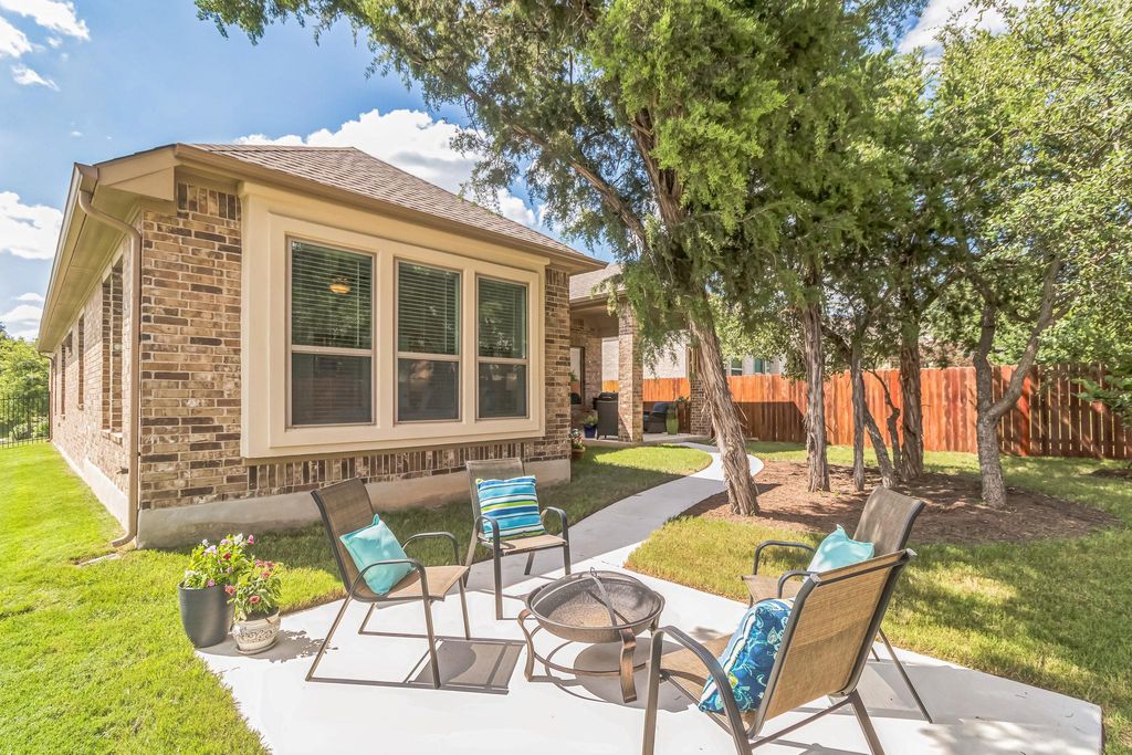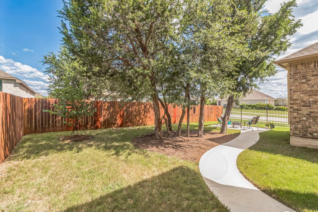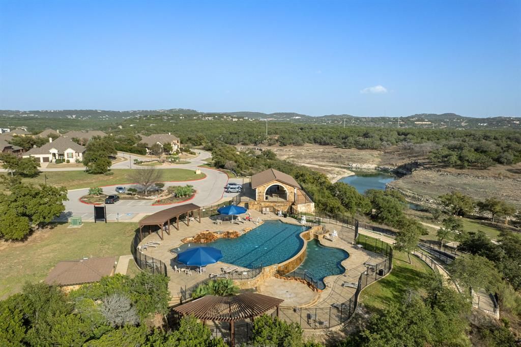 Stunning Hill Country view! Beautifully maintained 1-story Coventry-built home on a spacious corner lot with 3 bedrooms PLUS a study. Light-filled OPEN FLOOR PLAN with high ceilings, coffered details, engineered wood flooring, and brand-new carpet. The study, primary suite, and backyard patio all enjoy peaceful Hill Country view. The kitchen offers abundant cabinetry and opens to the living and dining areas"”ideal for entertaining. Outdoor living features a covered patio and extended open patio, surrounded by mature trees to enjoy. Additional highlights include a Ring doorbell and security camera, smart home features, backyard security lighting, and full sprinkler system. Located just across the street from the Balcones Canyonlands National Wildlife Refuge and a short walk to the lake and resort-style pool, this home combines thoughtful design, quality construction, and natural beauty"”perfect for everyday living.