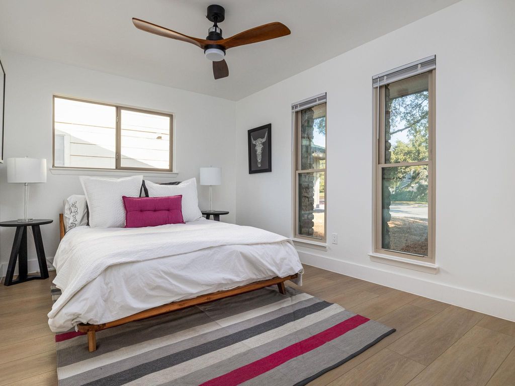 Beautifully renovated home in the highly sought after Westcreek neighborhood, just minutes from Whole Foods, Costco, and all the shops and restaurants at Arbor Trails plus lots of eateries and service providers. Close to Mopa/290 for quick access to the airport and to downtown. This move-in-ready Austin home combines designer finishes, open living spaces, and thoughtful updates throughout. Light and bright modern finishes with the warmth of wood accents offer a sophisticated design. Step inside to tall ceilings, exposed wood beams, and wide plank luxury vinyl flooring that gives the home a bright, modern feel. The light filled living room features a Venetian plaster fireplace and flows seamlessly into the updated kitchen with quartz countertops, a pot filler faucet, stainless steel farmhouse sink, pantry, and custom lighting. The spacious primary suite includes dual closets, a sliding barn door, and a spa inspired bathroom with double vanities and a walk in rainfall shower. Each room highlights elevated details, from recessed lighting and tall baseboards to a clean, neutral palette. Outside, enjoy a large private backyard with mature trees, a shaded pergola, and an outdoor fireplace perfect for entertaining, relaxing, or dining al fresco. Located within walking distance to Patton Elementary and Westcreek Park, this home sits in one of Austin's most established and convenient neighborhoods. Easy access to Mopac and Highway 290 makes getting to Downtown Austin, Zilker Park, and the Barton Creek Greenbelt quick and effortless.