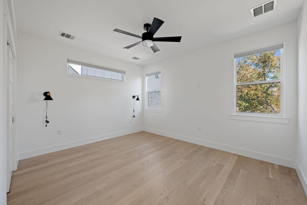 Discover modern living in this stylish 2-bed, 2.5-bath Farmhouse Contemporary located just minutes from Downtown Austin, the Riverside Oracle Campus, and the Boardwalk at Lady Bird Lake. Enjoy unbeatable walkability to the hike-and-bike trail and quick access to Austin's best bars, restaurants, and entertainment. Step inside to an open-concept layout filled with natural light, soaring ceilings, and a sleek floating staircase. The kitchen features stainless steel appliances, quartz countertops, and a spacious island perfect for cooking or gathering. Wire-brushed ivory white oak hardwoods run throughout the home, adding warmth and elegance to every room. Energy-efficient upgrades include spray foam insulation, a tankless water heater, and an EV car charger"”ideal for modern, eco-minded living. Both bedrooms offer comfort and privacy, each with its own en-suite bath. Outside, a private fenced backyard provides the perfect spot for unwinding, entertaining, or weekend lounging. A rare blend of design, convenience, and location"”this home puts the best of central Austin right at your doorstep.