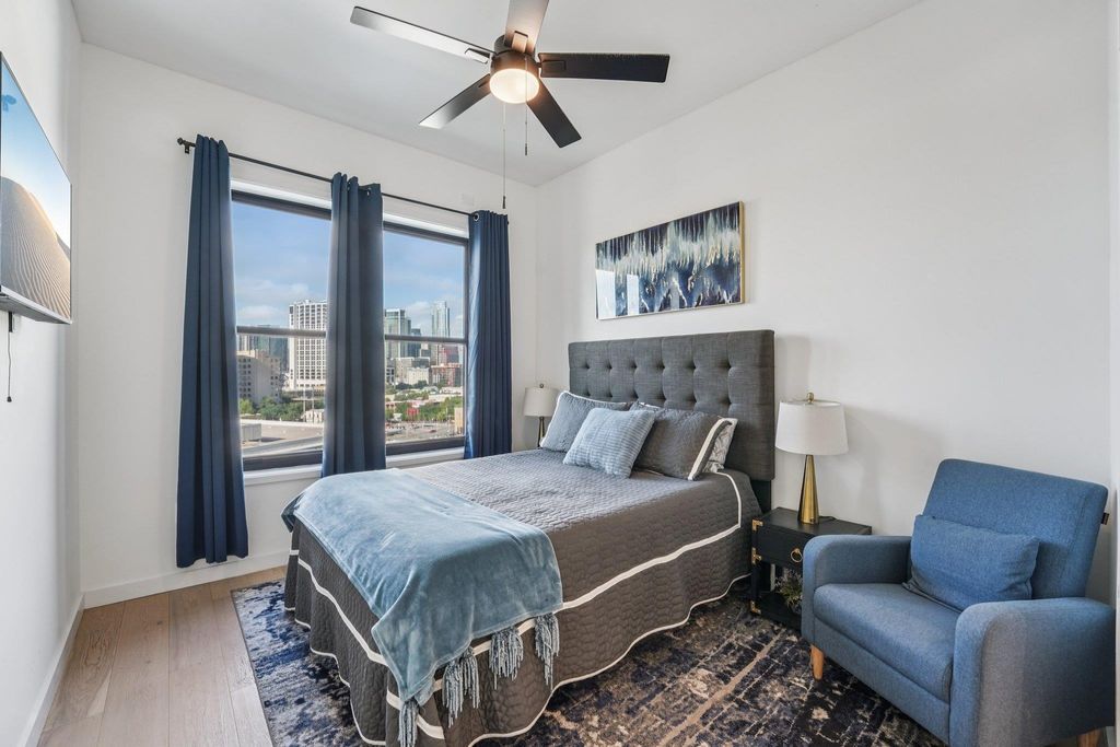 Sleek High-Rise Condo with Stunning City Views! This stylish 2 bedroom/2 bathroom unit features resort style amenities such as on site fitness center, kitchen space, outdoor grills, dog run and sparkling pool! Interior boasts Floor-to-ceiling glass picture windows, state of the art appliances, and 10ft ceilings. Located in the heart of the city, you're steps away from dining, shopping, and minutes from UT campus and DKR stadium!