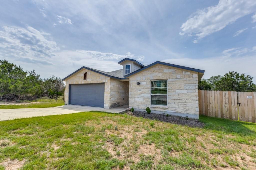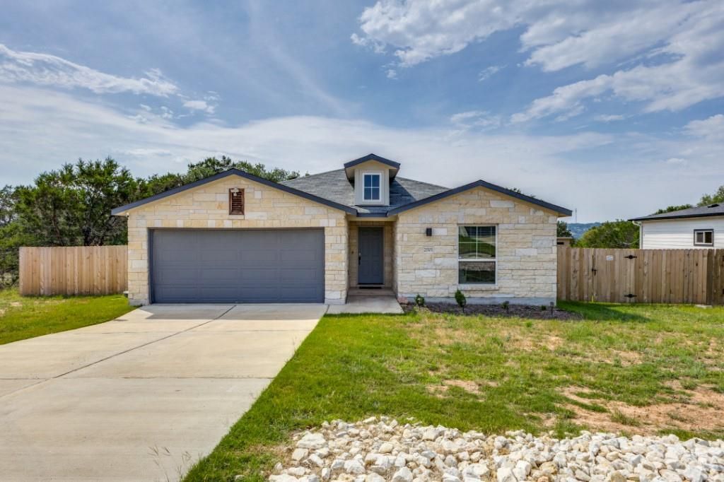 Welcome to your slice of tranquility in Lago Vista! Nestled on a quiet street just minutes from Lake Travis, this beautifully maintained single-story home offers the perfect blend of nature, privacy, and modern comfort. The neighborhood comes with access to a private neighborhood boat launch as well as 9 parks and many more amenities, it's ideal for those who love peaceful evenings and lakeside living. The open-concept floor plan is filled with natural light and features high ceilings, recessed lighting, and a spacious kitchen with granite countertops and a large island"”perfect for entertaining. The primary suite is a private retreat with a walk-in shower and double sinks. Two additional bedrooms and a second full bath offer flexibility for guests or work-from-home needs. Appliances are negotiable with the contract. This home offers a rare combination of lifestyle, comfort, and location"”don't miss this opportunity to live the Lago Vista dream!