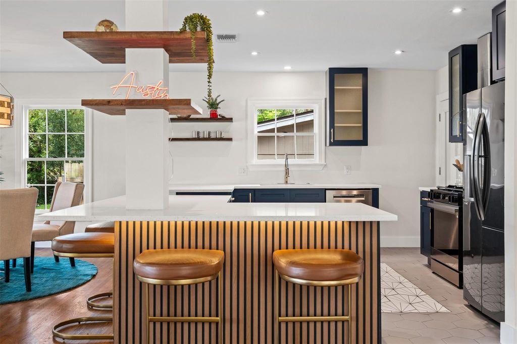 Prepare to be amazed by 4406! This one really excites-This is a launchpad for your Austin adventures, A ground up stunning renovation made with tons of improvements and a lot of love- It's a modern twist on a 1940's Austin classic. If the metal roof got your attention- then so will the tankless water heater and solar panels. Get ready to embrace a life where vintage charm dances with modern pizzazz, We strive to create special places to gather with loved ones & this is no exception- An idea,,, turned into a dream kitchen. Fabulous is everywhere you look! Quartz countertops, custom cabinetry, Microwave drawer & a pop-up island outlet center- We can tell -this quickly becomes everyone's favorite gathering spot - Check out the hall bath- it's quite stunning-while paying homage to the 1940's era. Natural light fills every room while the kitchen bar invites friends to gather 'round and share tales of Austin escapades. In the living room- first notice that you can hear your heartbeat- it's SO quiet! Envision cozy evenings and each light fixture is strategically placed to fill the home with jaw dropping ambiance and fills the space good energy- It really feels amazing to sit back and take it all in and create memories. .The super comfy primary bedroom feels really good- you'll want to stay a while. The Main bathroom is a place to really enjoy.. and the shower...well it's amazing! Other goodies include a shed that offers a secret lair for storing all your s#!%. Walk around and check out the front & rear porches and pick your favorite spot! 4406 provides a welcoming embrace- The massive walk-in primary closet, an open floor plan & energy efficient materials help reinforce the WOW factor throughout! This 1949 contemporary gem offers the perfect blend of comfort, energy efficiency and convenience of being 1.5 minutes from St. Davids (hey- calling all physicians!) We hope you will enjoy this modern Austin classic as much as we enjoyed bringing it to life!