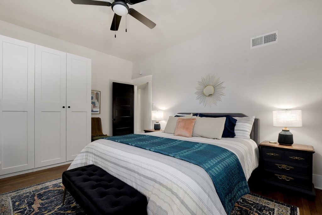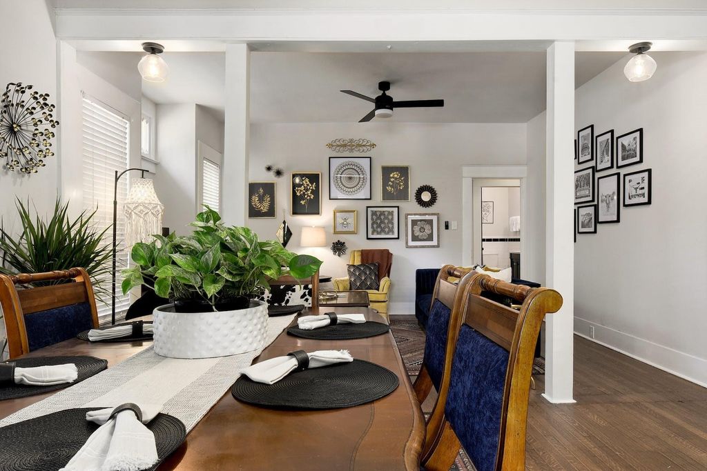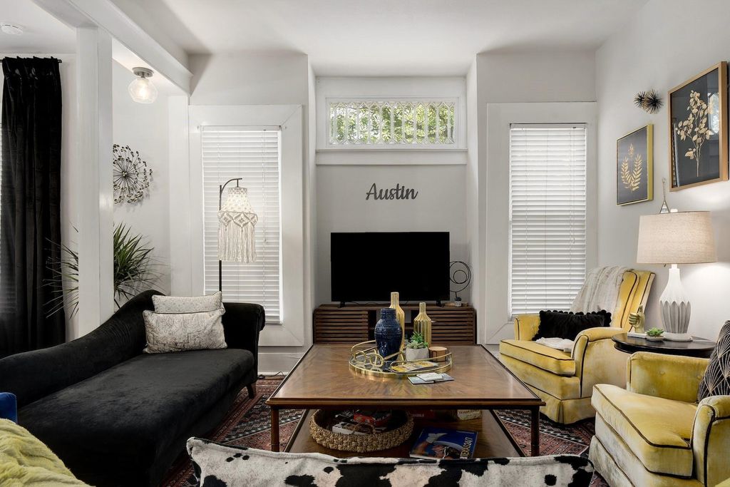 Discover "The HydeOut" at 712 East 44th Street, Unit A, a charming 1939 bungalow in Central Austin's desirable Hyde Park/Hancock neighborhood. This 2,052 sq. ft. residence offers an exceptional blend of historic character and modern potential, operating as a highly-rated "Bohemian City Paradise" on Airbnb. It lives like a standalone home on a large shaded corner lot, with the owner maintaining 38% ownership of the common area. The interior features original hardwood floors, high ceilings, and a fireplace, exuding "Boho Vintage" character. The versatile floor plan includes four bedrooms and three full bathrooms, with a main-level primary suite and an upstairs Jack-and-Jill arrangement with two beds and a connected bath. The kitchen boasts granite counters, a gas range, a coffee bar, and the property features an in-unit laundry area. Outdoor living includes a large covered front porch with seating. The property provides off-street parking for 3-4 cars, including one covered spot. Its unbeatable location is blocks from neighborhood favorites like Jo's Coffee, Uncle Nicky's, Shipe Park, and Hancock Golf Course, and just one mile from UT Austin and minutes from downtown. This property offers a unique combination of appeal and financial potential as either a profitable short-term rental or a central urban sanctuary. Furnishings are available and the potential is extraordinary!
