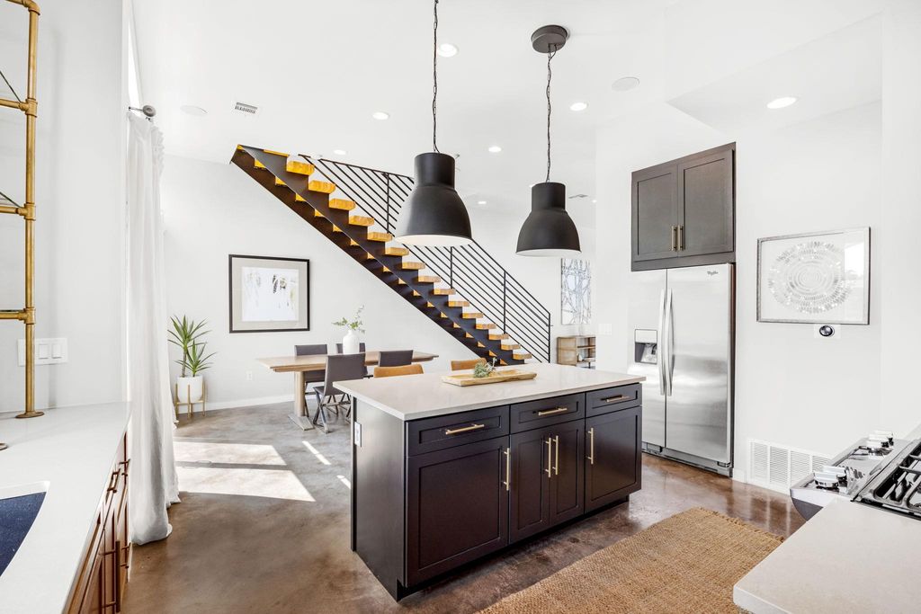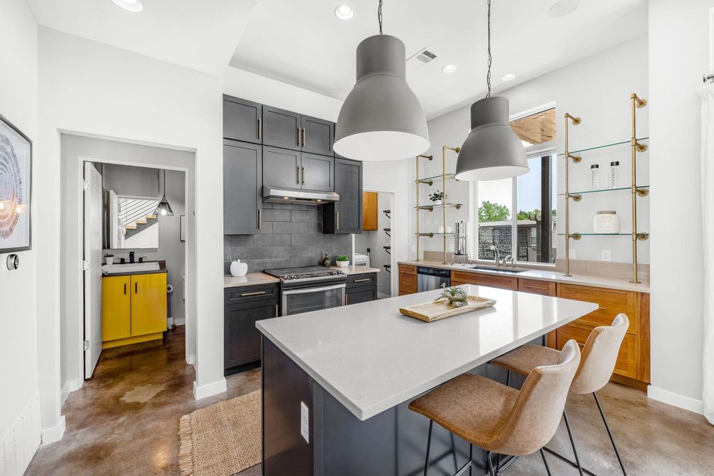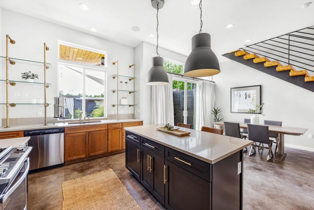 Featured on HGTV, this extraordinary residence has been freshly painted throughout and crowned with a brand-new roof. The home includes a climate-controlled shipping container space"”perfect for a studio, office, or third bedroom. Ideally positioned between Mueller and Windsor Park, you'll enjoy premier shopping, acclaimed restaurants, the finest HEB in Austin, parks, trails, and easy access to downtown, I-35, and the 183 Toll. The chef's kitchen dazzles with quartz countertops, sophisticated black cabinetry with gold hardware, designer tile backsplash, custom pipe shelving, and professional-grade stainless appliances. The luxurious owner's suite features private balcony access and a spa-inspired ensuite with an oversized dual vanity, gold fixtures, brick flooring, and a frameless glass walk-in shower. A second bedroom upstairs includes its own ensuite bath, ideal for guests. The entertainer's backyard offers lush lawn space and contemporary hardscaping"”your perfect outdoor oasis. This is more than a home; it's a lifestyle.