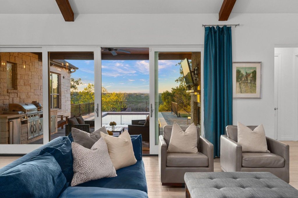 Welcome to 124B Carefree Circle, perfectly situated in the heart of Lakeway. This exceptional four-bedroom, five-and-a-half-bath home blends luxury and comfort, offering stunning views of Lake Travis and high-end finishes throughout. Built in 2014, the home features an expansive open-concept living area with soaring ceilings and rich wood floors. The gourmet kitchen flows seamlessly into a spacious and inviting living room, ideal for entertaining or relaxing with a view. The primary suite is a true retreat with a spa-like bathroom, soaking tub, and large walk-in closet. Upstairs, a versatile bonus space above the garage includes a full bath, perfect for a media room, guest suite, or home gym. Step outside to your private oasis featuring a sparkling pool and spa, a poolside half bath, a covered patio with a built-in grill, and a backyard putting green designed for effortless outdoor living. Just minutes from Yaupon Golf Course and the renowned World of Tennis, this home offers the ultimate Lakeway lifestyle with breathtaking Lake Travis scenery at every turn.