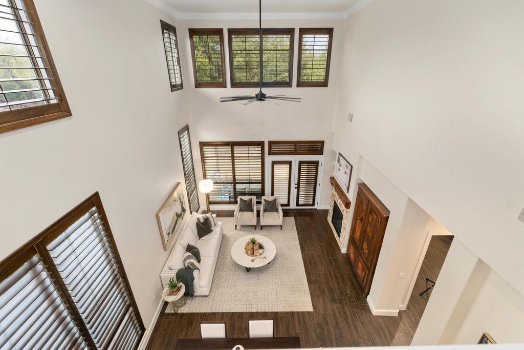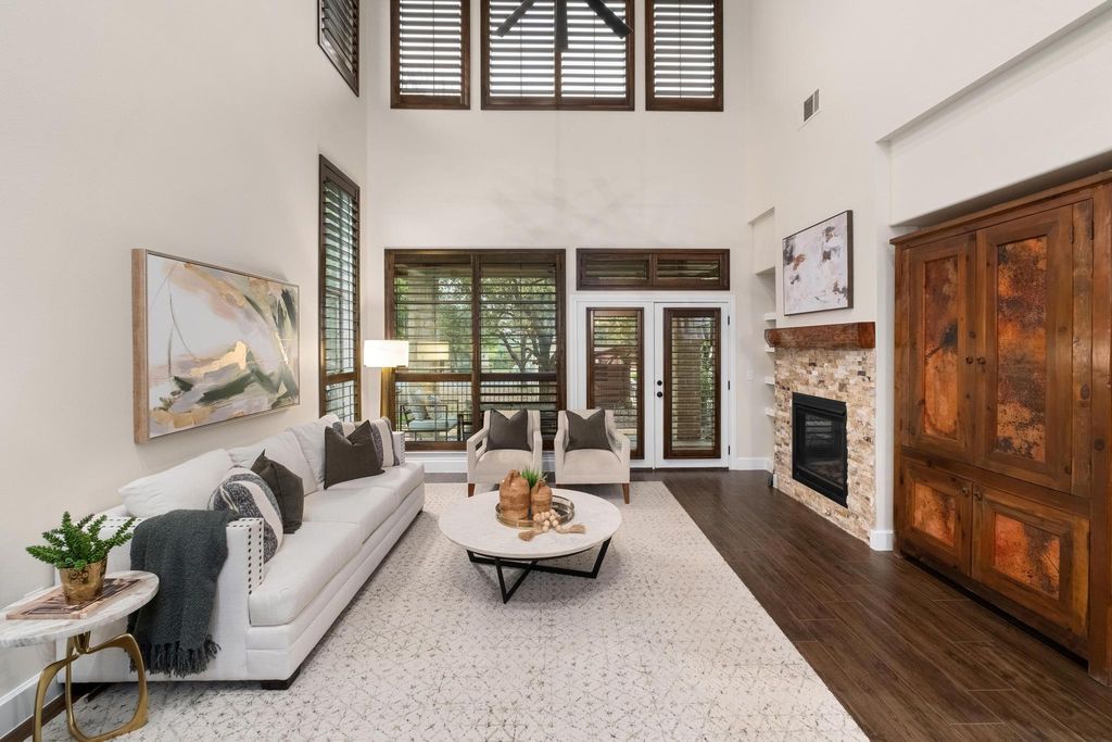 Elegant light filled condo with soaring ceilings and open floor plan. Newly renovated with high end finishes including floors, light fixtures, paint tile and countertops. Complete list attached. Spacious main level owner's suite with a sitting area and spa-like ensuite bath, laundry room and half bath complete the first floor. The second level has an additional living area, two large bedrooms and a bath. A "Texas basement", on this level, adds ample storage space. The garage is fitted with a work space, cabinets and adjustable ceiling racks. Conveniently located with easy access to downtown Austin, Lantana Place restaurants and the Galleria area for shopping and dining. Gated Community with resort style pool & gym. Gym is located at 8200 SW Pkwy, The Enclave. There's a footpath at the west end of Escondera. . Please use Showing Time to Access code