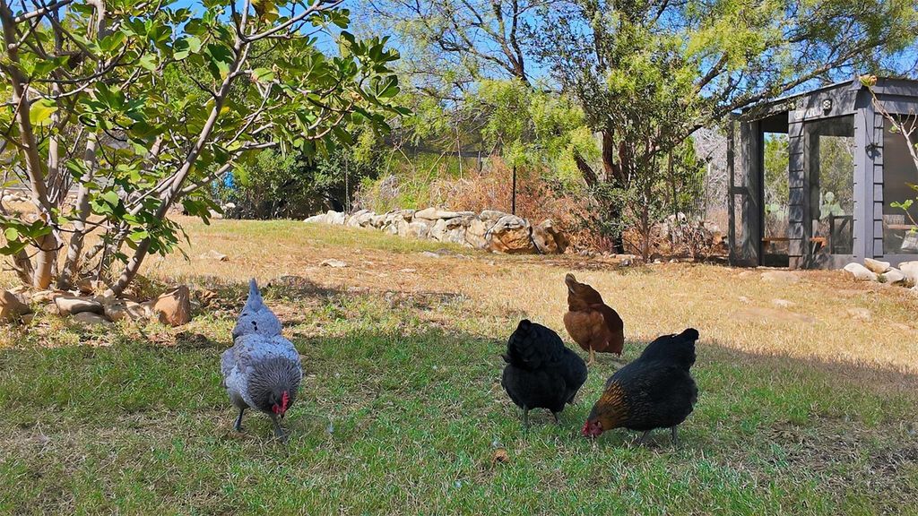 Welcome to 4110 Tyx - a Hill Country Micro-Farm Retreat with Breathtaking Canyon Views, Modern Comforts, and No Restrictions! Nestled among celebrity neighbors in the heart of the Texas Hill Country, this charming 4-bedroom, 3-bath cottage-style home offers a unique reverse floor plan features the main living, dining, and kitchen areas plus 3 bedrooms upstairs, with an additional bed, bath, and an living room downstairs"”ideal for guest. Designed to capture the beauty of its surroundings, the primary suite, kitchen, and living room showcase panoramic canyon views. Step onto the expansive deck, perfect for morning coffee, evening sunsets, or weekend entertaining. For those seeking a true micro-farm lifestyle, this property delivers. The partially fenced backyard currently has free-range chickens and offers space for vegetable gardens and fruit trees. The land is filled with native flowering plants that attract butterflies and pollinators, and it can also support active beehives for honey production. Over 125 yards of enriched soil have been added to create a thriving micro-farm with a ton of fruits and vegatables. Perched on a private cliff overlooking Lick Creek, which feeds into the Pedernales River, this property provides direct access for kayaking, fishing, and wildlife watching. Natural cliffs and cave formations add to its rare Hill Country charm. Recent updates include: "¢ Water filtration system (2025) "¢ Septic pump & wiring (2025) "¢ Exterior paint (2024) "¢ Balcony flooring, railings & beams (2024) "¢ Hot water heater (2023) "¢ AC compressor (2020) & blower (2025) "¢ Septic sump pump (2021) "¢ Interior AC unit (2018) "¢ Well head (2017) Blending modern comfort, natural beauty, and sustainable living, this is a Hill Country micro-farm retreat where you can enjoy privacy, scenic views, and the freedom to live off the land"”all within easy reach of local restaurants, shops, and city conveniences.