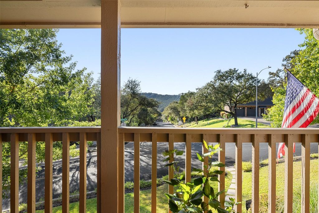 Welcome to 5206 Backtrail Dr, a peaceful haven nestled in the scenic and highly sought-after neighborhood of North Cat Mountain. Thoughtful landscaping, mature trees, and a stunning wraparound upper porch offer standout curb appeal before you step inside. Soaring vaulted ceilings and walls of windows fill the living space with light, centering around a striking floor-to-ceiling brick fireplace. The heart of the home is a bright kitchen with generous counter space, stainless steel appliances and a large window that perfectly frames views of the tree-filled backyard. Two secondary bedrooms and a full bath complete the main level, along with thoughtful storage throughout including a closet under the stairs, a finished-out attic walk-in closet and an extra-large temperature-controlled garage. Upstairs the spacious primary suite feels like a retreat offering high ceilings, a walk-in closet and direct access to the expansive wraparound porch where you can take in sweeping views of the Northwest Hills and even catch Fourth of July fireworks. The en-suite bath features dual vanities, a walk-in shower and a soaking tub creating a spa-like setting to unwind. A flexible bonus room upstairs currently serves as an office but could easily become a nursery, yoga space or custom dressing room. The backyard is where this home truly shines with nearly a third of an acre of lush tranquility, multiple decks for lounging and dining, a grassy area for pets or play, 8-foot fencing for privacy and outdoor lighting that brings the space to life after dark. Located just minutes from shopping and dining along Far West and 2222, with quick access to Mopac and Loop 360, 5206 Backtrail Dr offers the perfect balance of tucked-away hill country serenity and everyday convenience. You're zoned to highly rated AISD schools including Doss Elementary, Murchison Middle School and Anderson High School and surrounded by nature trails, neighborhood parks and the best of Northwest Austin living.