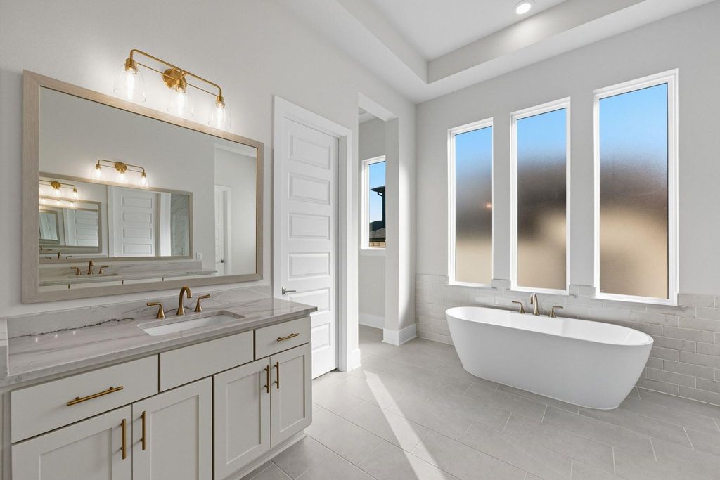 MOVE IN READY!! Westin Homes NEW Construction (Morgan, Elevation A) 5 Bedrooms, 4.5 baths. Private primary suite with spacious double walk-in closets downstairs. Breathtaking Rotunda Entry with Study and Formal Dining, Breakfast area attached to Chef's Dream Kitchen. Guest Suite on First Floor with 3 Bedrooms Upstairs to Accompany Both Game & Media Rooms. Covered Patio attached, 4 car Garage, Front & Back Sod! Come Visit Your New Home Today!