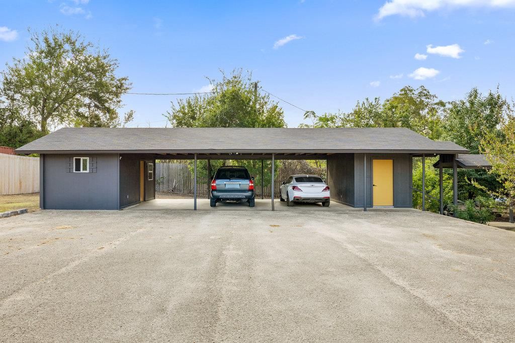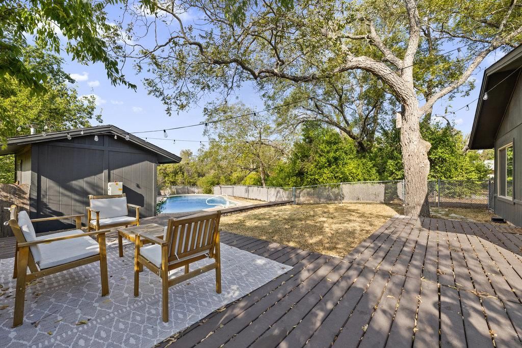 Beautifully re-imagined ranch-style home nestled on nearly 1.25 acres just 15 minutes from downtown Austin. Set back along a private drive and surrounded by mature oaks and a pecan grove, this home offers a warm sense of seclusion while remaining close to favorites like Oak Hill Social and a short drive to Jester King Brewing. Step into timeless appeal as you cross the charming front porch and enter into a updated interior featuring wood floors, exposed beams, and modern fixtures throughout. The heart of the home is the kitchen, featuring stone countertops, stainless steel appliances, and an open flow that connects to two distinct living rooms, ideal for both relaxed family time and more formal entertaining. The generous primary suite is its own private oasis, with expansive windows framing the wooded serenity outside and an en-suite bath boasting a double vanity and thoughtful design. Two additional bedrooms and a full bath provide flexible space for guests, family, or a home office. Outdoors is your own resort-style setting: a private pool, extended patio and deck, a dedicated pool bathroom, and an outdoor shower create the ultimate environment for al fresco dining, grilling, lively entertaining, or unwinding under the Hill Country sky. A dog run creates the perfect space for pets to roam safely. The three-car carport plus a workshop and shed offer space for storage or tinkering. A large circle drive provides ample space for a boat, RV, or extra toys. A breezeway connects the carport to the house for ease of access and flow.