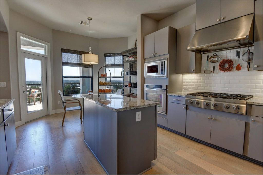Welcome to the Enclave, a collection of 35 condominium residences within a gated community minutes from downtown Austin as well as proximity to the Hill Country Galleria. Lantana Place shops & restaurants are conveniently located within 3 blocks, with upscale restaurants, retail services, a grocery store/deli, cinema and medical offices. Incredible views face 50 acres of a natural preserve from the living area and master suite, with a rooftop deck to watch fireworks on the 4th of July! The stunning, immaculate 3/2 Caliza plan has a first floor entry with elevator or stairs to single-level living , spacious living/dining, open plan with an inviting gas log fireplace and upgraded surround. There are designer finishes throughout and a dramatic gourmet kitchen. This floor plan allows you to live on the main level. Enjoy a Lock and Leave lifestyle.