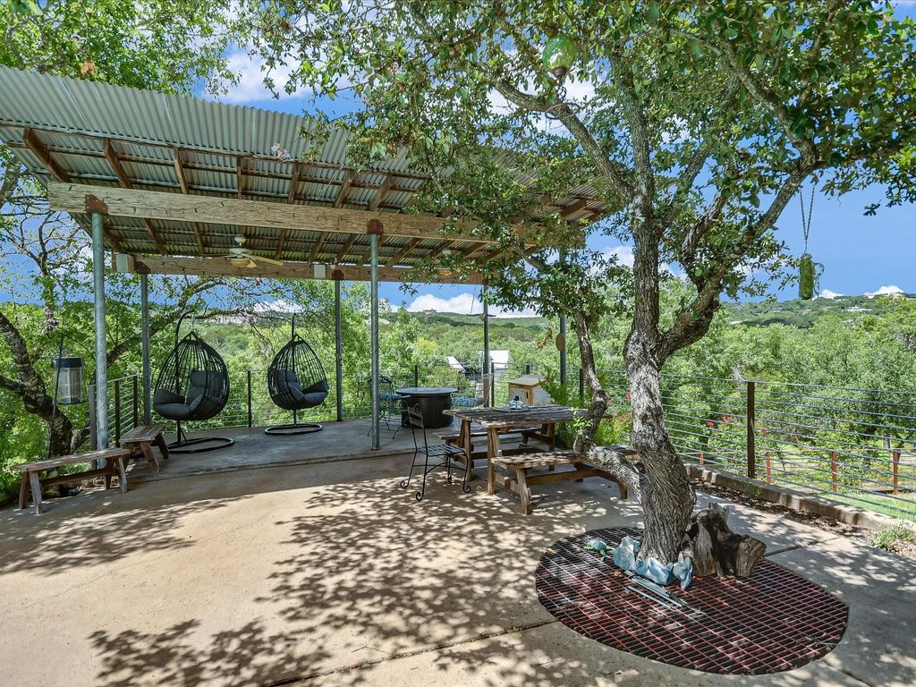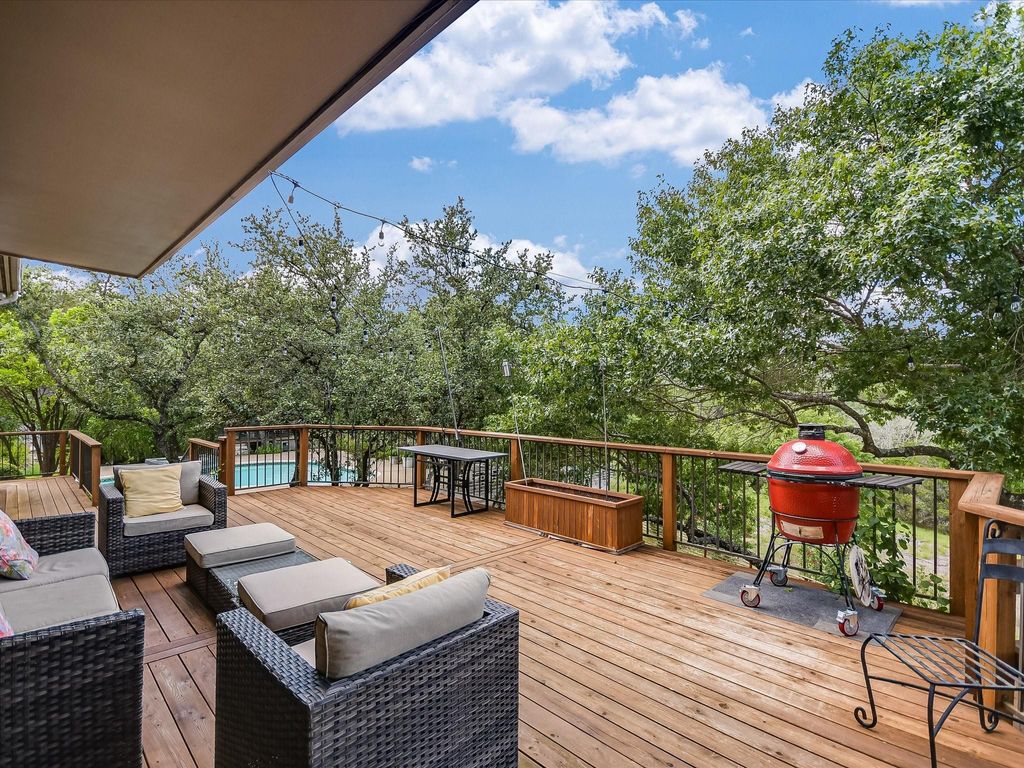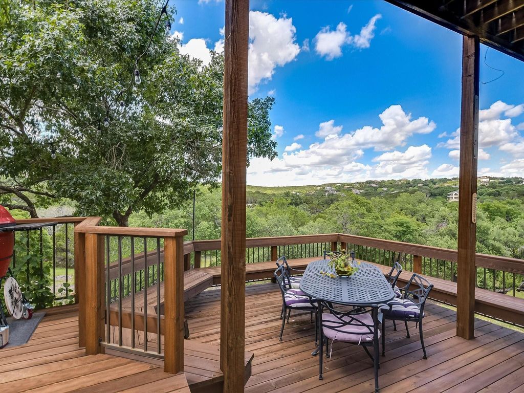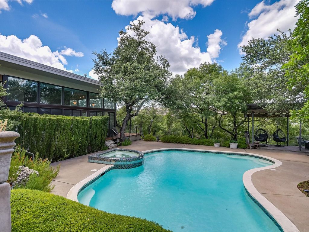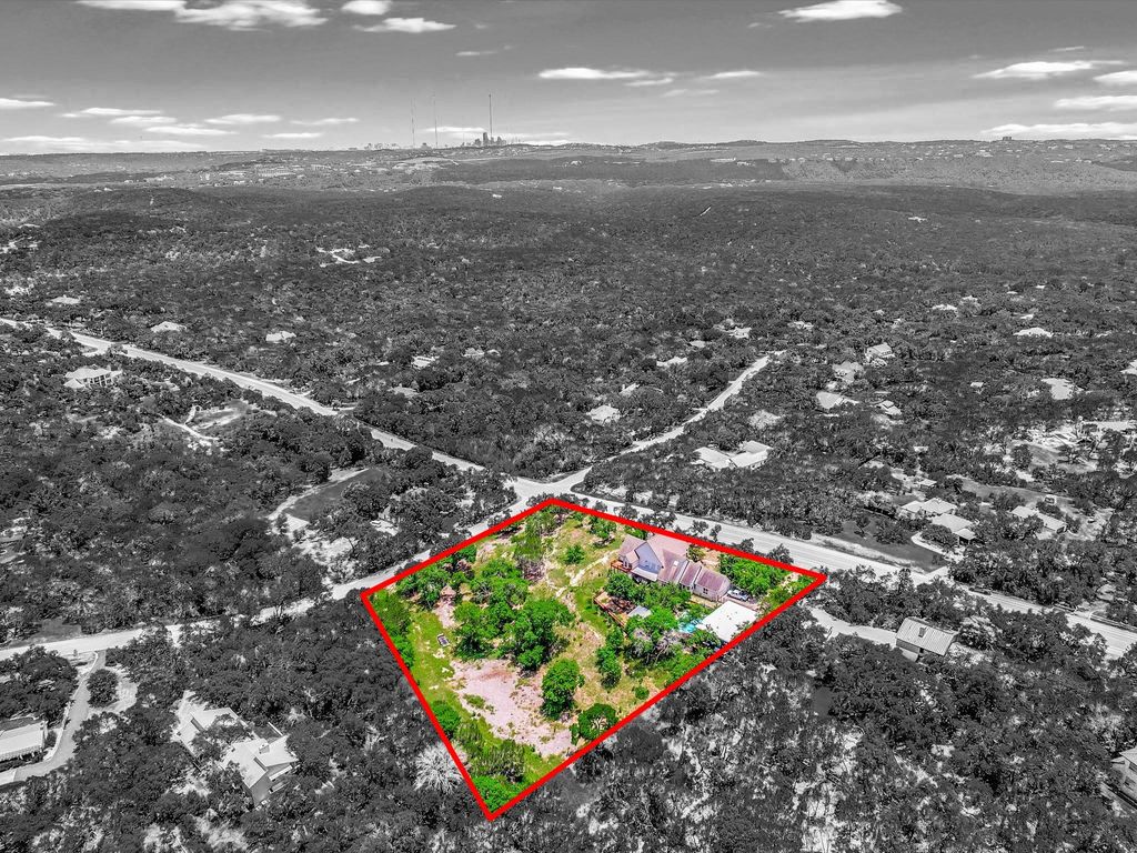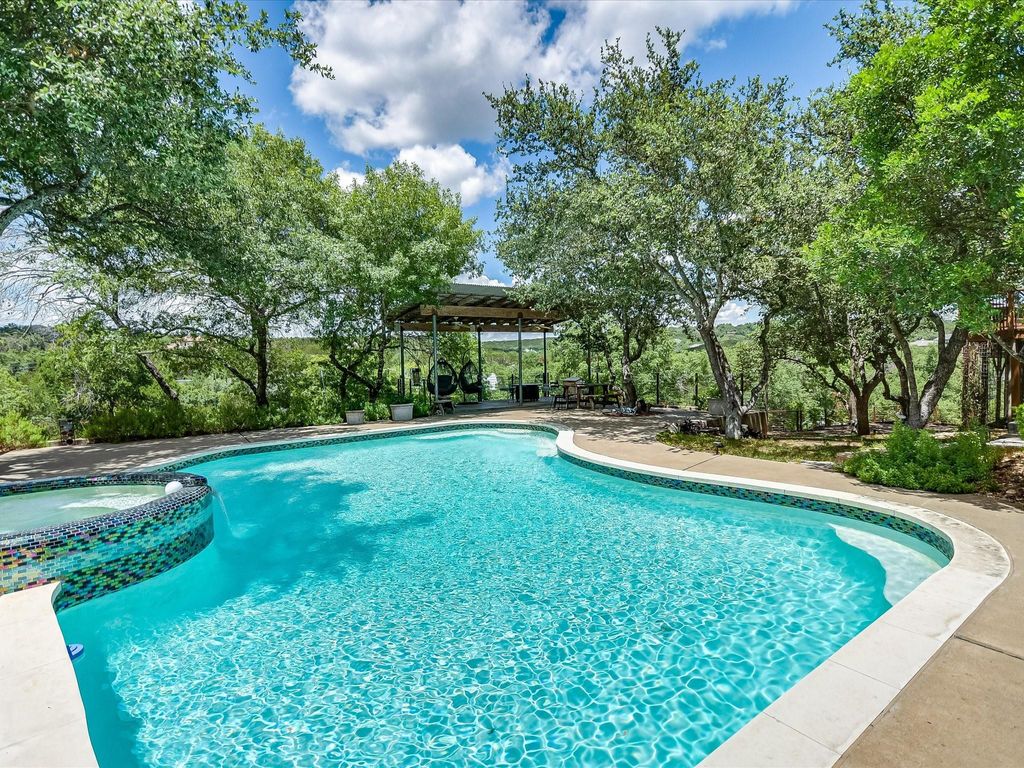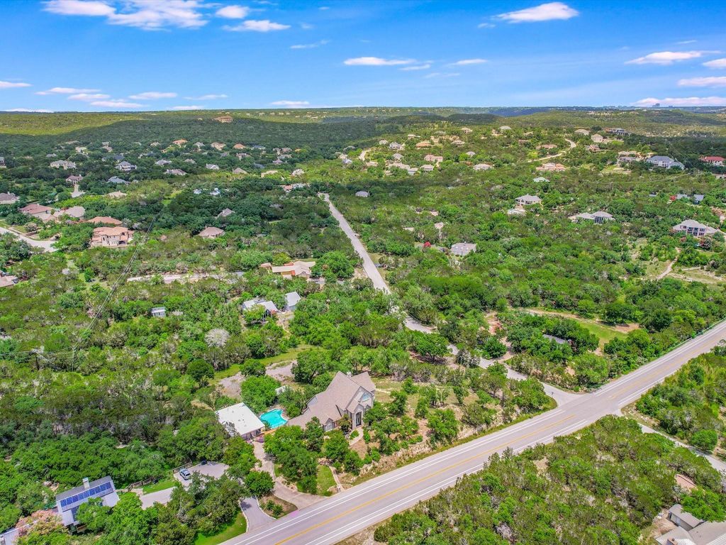 MAJOR PRICE IMPROVEMENT! **See Virtual Tour link for more Photos/Info/floorplans etc.** Located on a seldom-available, gently sloping 2.7-acre corner lot, just 20 minutes from Downtown Austin, this West Austin Estate offers luxury living with breathtaking panoramic Hill Country views. With a less restrictive voluntary HOA, a low 1.67% tax rate, and enough land to expand with a future guest residence or garage (with separate access from Turkey Creek Drive), this estate provides both privacy and potential. The property features a 5-bedroom main house, a Glass Treehouse Guest House, a pool, and extensive outdoor living spaces, all designed for modern comfort and style. -Main House- Spacious living room with updated hardwood floors, high ceilings, built-in bookcases, gas fireplace, and French doors leading to the back deck and patio. Sunlit library with floor-to-ceiling bookcases. Elegant formal dining room, perfect for gatherings. Large kitchen with center island and informal dining area. Main floor Primary Bedroom with sitting area, walk-in closets, updated bath, separate shower, garden tub, and double vanities. Main floor Bedroom #2 with a full bath. Second floor features Bedrooms #3, #4, and #5 with an updated bath. Bedroom #3 includes a private deck with stunning views. Bedroom #5 is a two-story loft, ideal for a home office, gym, or flex space. -Outdoor Living- Inground pool and spa. Expansive pool deck, back deck, and patio areas"”perfect for entertaining or relaxing. Native landscaping, terracing, automatic drip irrigation, and landscape lighting. -Glass Treehouse Guest House- Floor-to-ceiling windows, high ceilings, and stained concrete floors. Full bath with a walk-in shower. Attached oversized 1-car garage and workshop with fresh paint and floor coating"”ideal for hobbyists or gearheads. A unique opportunity to own a property that combines space, flexibility, and stunning surroundings.