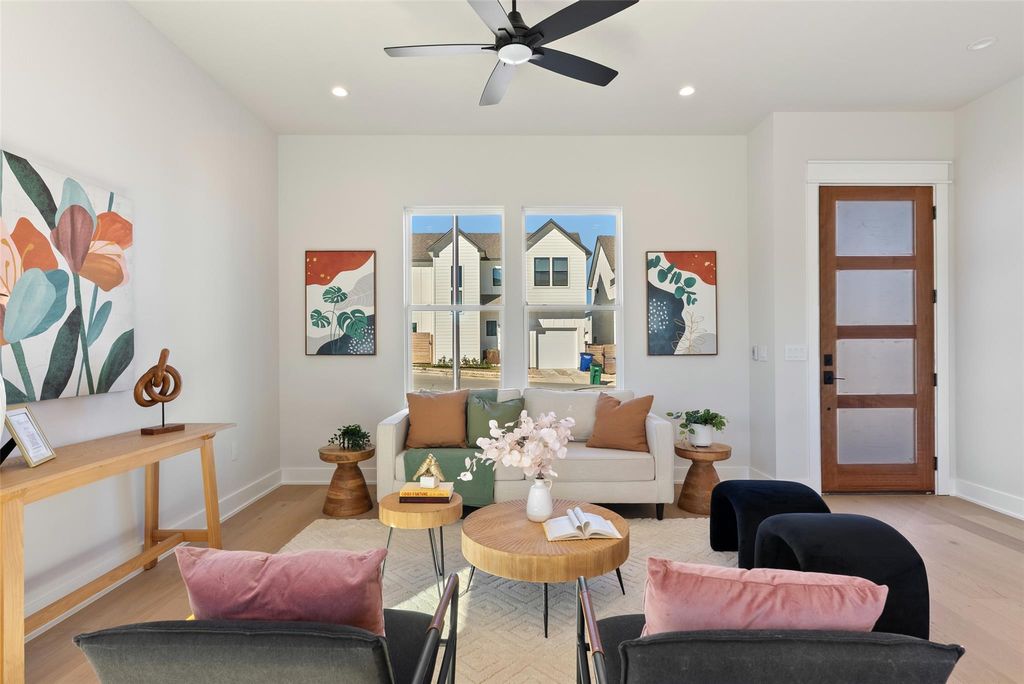 Discover modern living at its finest in this stunning, brand-new 4-bedroom, 3.5-bath two-story home in Windsor Park. Ideally located near Manor Road and Mueller, with quick access to Hwy 183 and Hwy 290, this home offers both convenience and contemporary design. Inside, you'll find an open-concept layout filled with natural light, complemented by wood and tile flooring throughout. The beautifully designed kitchen is the heart of the home, featuring stainless steel appliances, a gas range, sleek modern finishes, and a striking waterfall island"”perfect for entertaining and everyday living. The spacious primary suite offers a relaxing retreat with a large walk-in closet and a spa-like bathroom complete with a walk-in shower and dual vanity. Two additional bathrooms also feature dual vanities, providing comfort and functionality for family or guests. Upstairs, enjoy a private balcony"”an ideal spot for morning coffee or evening relaxation. Outside, the enclosed backyard offers a private space to unwind or entertain. Move-in ready, thoughtfully designed, and filled with modern elegance"”this Windsor Park home is not to be missed.