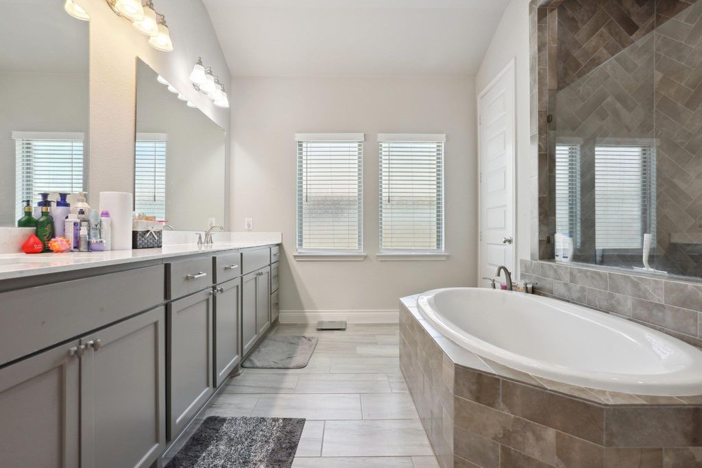 Sellers kindly request to remove shoes or use booties please! Appointments for viewing can be arranged through the Showing Service for this stunning single-story Perry Homes property, constructed in 2021 within the desirable ShadowGlen neighborhood. The community offers a variety of amenities such as a swimming pool, playgrounds, parks, and walking trails. This home features 4 bedrooms, 1 study, and 3.5 baths, all adorned with luxury vinyl planks. Upon entering, you are welcomed by an 8' wood door with a glass insert leading to a spacious, high-ceilinged hallway. A convenient study with double glass doors provides an ideal work-from-home space, while a guest suite with a private ensuite offers privacy for either in-laws or visitors. Additional bedrooms share a hall bath, ensuring everyone has their own space. The open living/dining/kitchen area is illuminated by large windows that overlook a generous covered patio, perfect for relaxation and entertainment. The kitchen boasts sleek white cabinetry, built-in stainless appliances, a large island, and quartz/siltstone countertops. The primary suite includes dual vanities, a soaking tub, a walk-in shower, and ample closet space. This exceptional home presents an opportunity for a fulfilling lifestyle, complemented by the community amenities. Conveniently located near highways 290 and 130. It is advisable to conduct proper due diligence and verify all information. The title process has commenced at Independence Title under Monica Middleton.