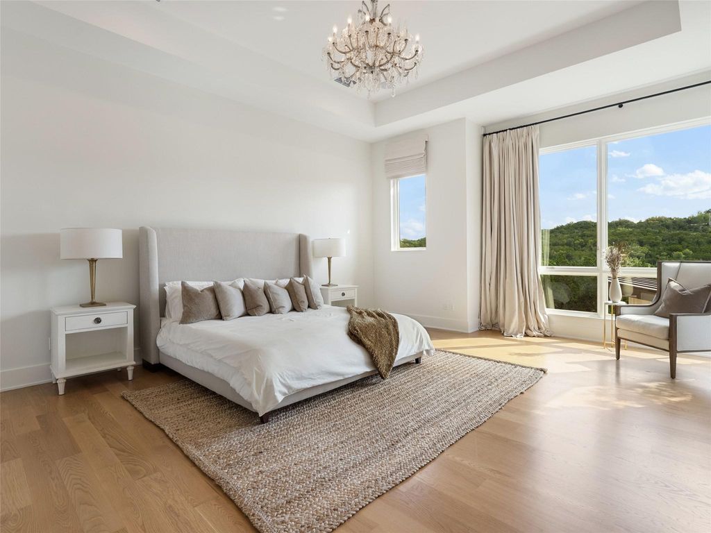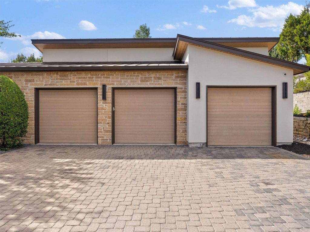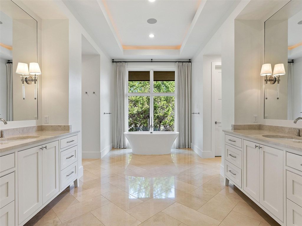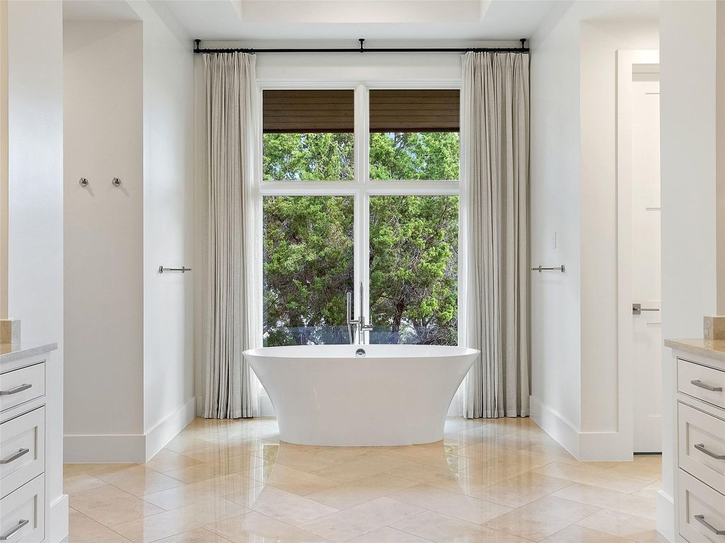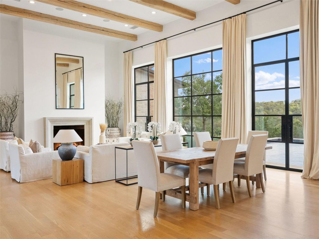 Set along one of the most distinguished streets in the exclusive Amarra enclave of Barton Creek, this striking Heyl Homes residence sits on 3.378 acres backing to a protected greenbelt, offering unmatched privacy and breathtaking Hill Country views. With its clean architectural lines and transitional design, the home delivers a seamless blend of luxury, comfort, and nature. Expanses of floor-to-ceiling windows flood the interiors with natural light, while the open concept layout creates an effortless flow between indoor and outdoor spaces, ideal for both intimate living and large-scale entertaining. At the center of the home, the kitchen is a modern statement piece, outfitted with custom solid wood cabinetry, an oversized island with bar seating, professional-grade Wolf appliances, and gas cooking that caters to both daily life and culinary enthusiasts. The primary suite is a true retreat, inclusive of the spa-inspired bath which features a freestanding soaking tub, a sleek glass walk-in shower, and dual custom closets. Each additional bedroom offers en-suite privacy, walk-in closets, and generous space, ensuring every guest or family member experiences elevated comfort. Additional features include a dedicated office with serene front-yard views and a versatile game room with a dramatic stone fireplace and sliding doors that open to the stunning backyard. Step outside to experience a private resort-style escape. The expansive covered patio, complete with a full summer kitchen, invites effortless entertaining. A sparkling pool and spa take full advantage of the home's sweeping Hill Country setting, delivering the ultimate in outdoor living. This residence is a rare combination of modern design, natural beauty, and refined craftsmanship in one of Austin's most desirable communities.