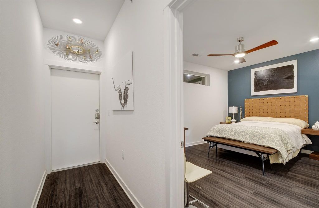 Rare, highly desired unit with its very own yard space, large storage unit in the building, and reserved garage parking space. Excellent location within walking distance to new hot spots like St. Elmo Brewing, Still Austin, Austin Winery, the Yard, and others. Only 3.8 miles to Downtown. Public condos feature a large, fully-equipped gym, dog park, large community fireplace, BBQ grills, yoga classes, and other planned activities where you can meet your friendly neighbors. There's a great pool with downtown views as well that's currently undergoing repairs. Furnishings negotiable for this turn key opportunity for the only unit for sale with a yard.