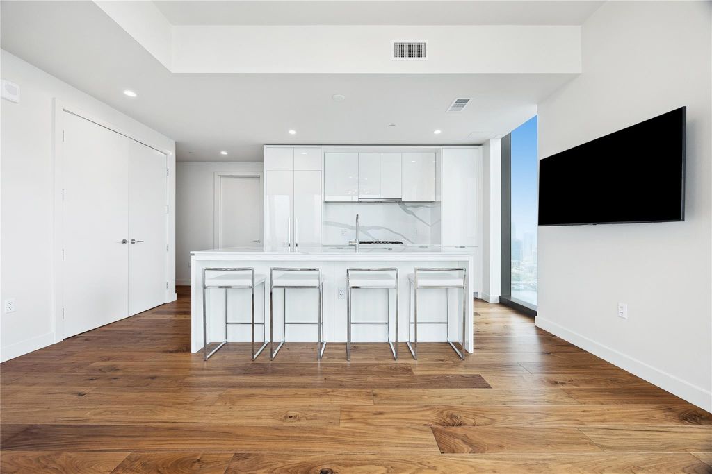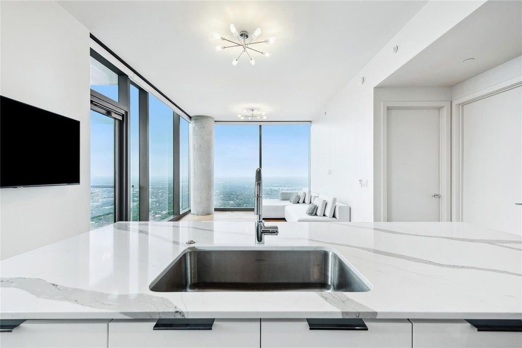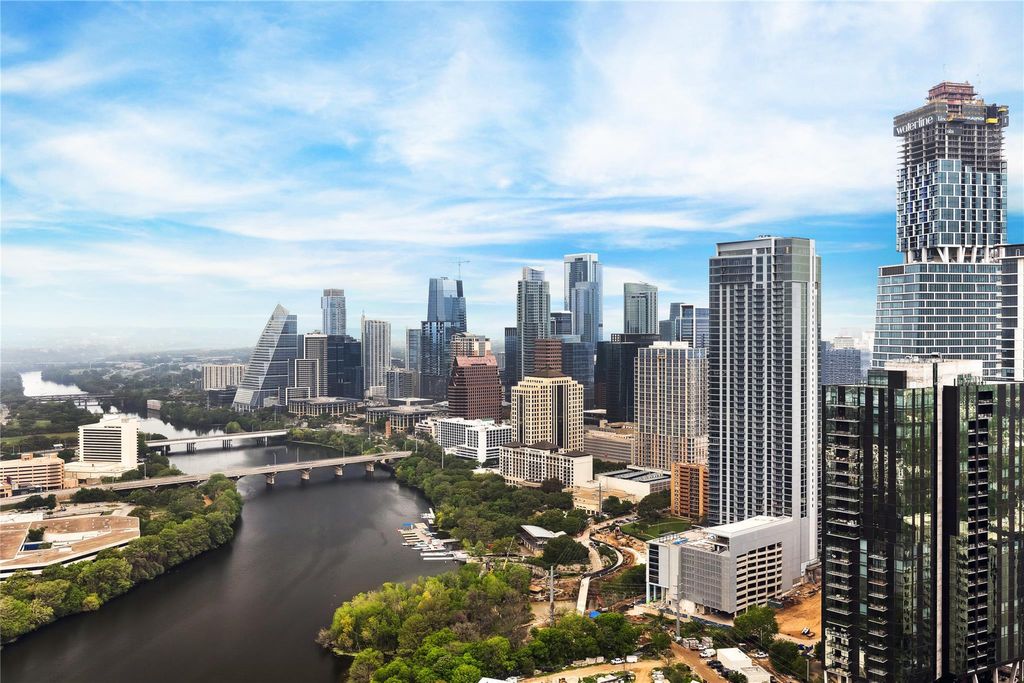 Step into your private sanctuary in the sky"”this stunning two-bedroom, two-bathroom spacious residence at 44 East Avenue offers a refined blend of luxury, comfort, and breathtaking scenery. Floor-to-ceiling windows frame panoramic views of Lady Bird Lake and the downtown skyline, bathing the space in natural light by day and sparkling city lights by night. From the moment you enter, every detail speaks luxury: high-end designer finishes, custom lighting throughout, and a seamless open-concept layout that blends modern sophistication with warm, livable elegance. The gourmet kitchen is a chef's dream, outfitted with premium Bosch appliances, and quartz countertops; this culinary space combines modern aesthetics with everyday practicality. Retreat to your expansive primary suite featuring a spa-inspired bathroom with exquisite fixtures and a fully customized walk-in closet that redefines storage and style. The second bedroom offers equal comfort, ideal for guests or a luxurious home office. Smart home features, electric window treatments, and ambient lighting systems create a truly elevated living experience. Step out onto your private balcony, and take in breathtaking sunsets over the lake-your personal front-row seat to everything Austin has to offer. 44 East Avenue seamlessly integrates with its natural surroundings. Residents have access to over 13,000 square feet of exceptional amenities: 24-hour concierge service, rooftop pool and deck with grilling areas, fitness center and outdoor yoga space, owner's lounge and conference room, dog park and pet-friendly facilities, guest suites for visitors, and secure parking garage. Don't miss your opportunity to own a piece of Austin's premier high-rise living. Schedule your private tour today and discover the elegance, comfort, and sophistication that define life at 44 East Avenue.