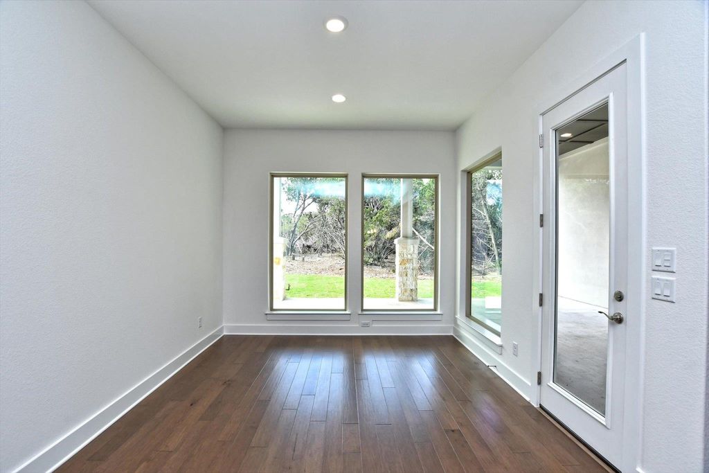 New construction home in The Hollows on Lake Travis. 7% flex incentive! You could afford up to $100,000 more home than if you bought a resale"”without raising your monthly payment. That means more space, more upgrades, and more of what you love. Call sales consultant for details. 3,038 square foot, 1 story home with 4 bedrooms, 4 baths, study and 3-car garage like model home. Wood flooring in main living areas. Kitchen with center island, quartz countertops, propane cooktop. Kitchen open to great room with corner fireplace and dining space. Primary bedroom with en-suite, huge walk-in closet, double vanity, separate shower with rainhead faucet. Study with French doors. Each secondary bathroom with full bath. Large covered back patio.