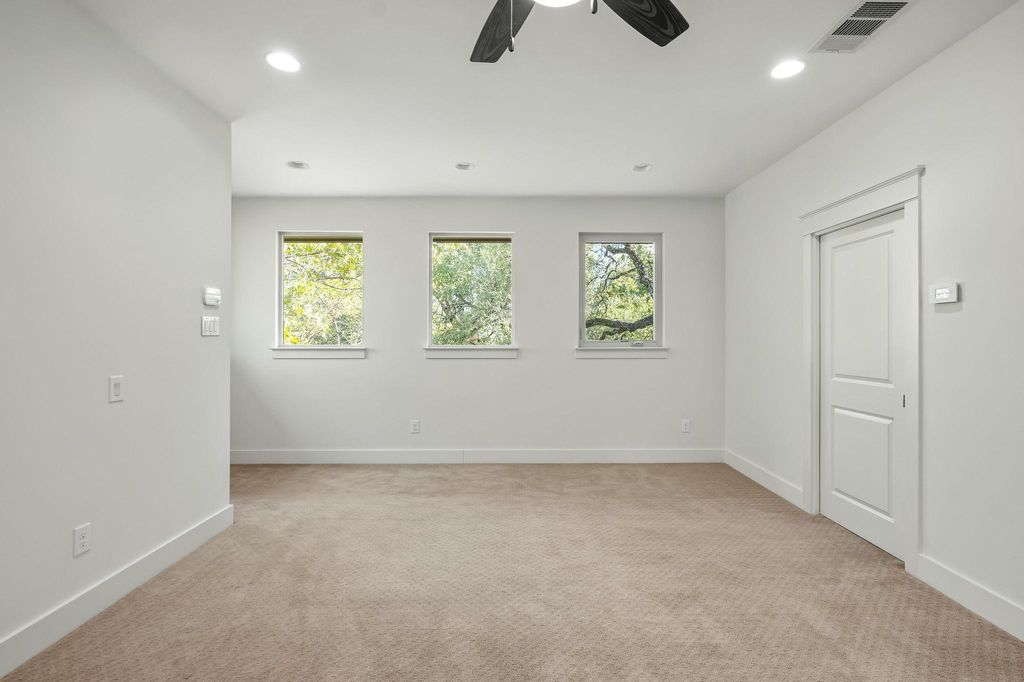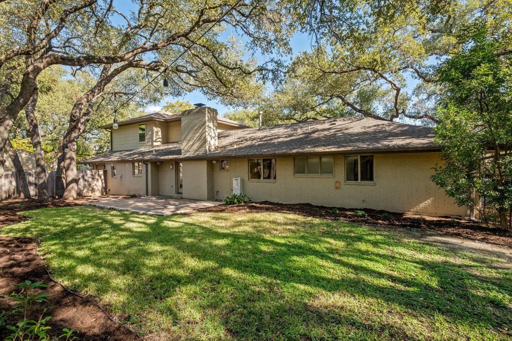 Tucked on the best cul-de-sac in Northwest Hills, this spacious two-story ranch offers a blend of character, updates, and potential. Set on an expansive 0.30 acre lot, the property provides exceptional backyard privacy with mature trees, and multiple outdoor spaces that are ideal for relaxing, entertaining, or creating additional garden or play areas. This setting is a rare find in one of Austin's most established and desirable neighborhoods. Offering 3,269 square feet per TCAD, the home includes 5 bedrooms and 3 full bathrooms, with a layout that provides flexibility for multiple generations, home-office needs, or guest accommodations. The updated kitchen features double ovens, double dishwashers, abundant storage, and a functional workspace designed for both everyday use and larger gatherings. The primary suite, located over the garage, includes an updated bath with a steam shower, a built-in closet system, and a private retreat-like feel. Significant improvements include replacing cast-iron pipes, creating long-term peace of mind. The two-car garage is equipped with a mini-split, providing year-round comfort for a gym, workshop, or hobby space. The washer, dryer, and hall refrigerator convey. This home is zoned to Doss Elementary, Murchison Middle School, and Anderson High School, which offers the International Baccalaureate program.