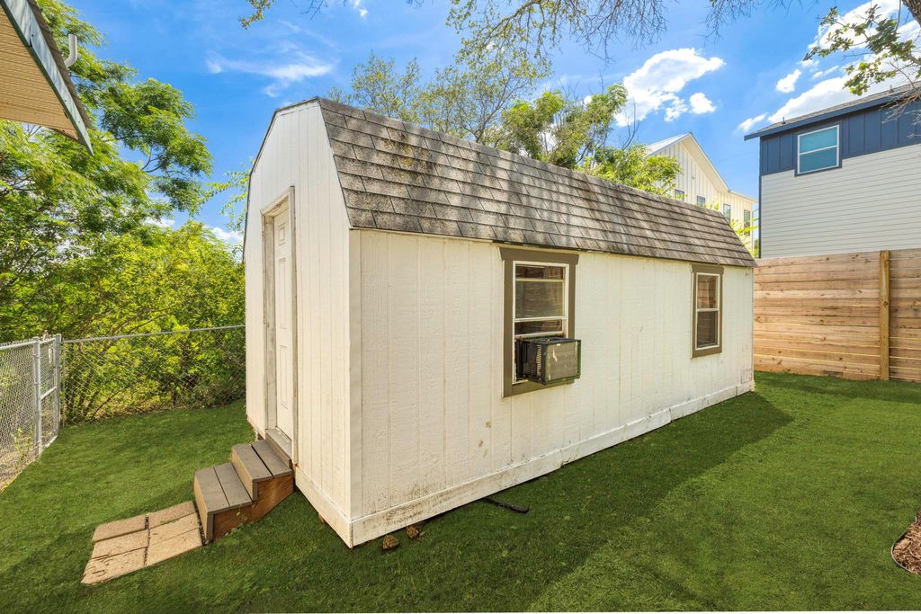 Tucked away in the scenic hillside community of Jonestown, this charming 3-bedroom, 2-bathroom home offers a peaceful retreat just minutes from the conveniences of Cedar Park. Step onto the welcoming front porch"”ideal for morning coffee or evening chats"”and into a sun-filled interior where soaring vaulted ceilings and large windows create an airy, open feel. The kitchen blends classic and modern touches with bright white cabinetry and rich, dark countertops, making it as functional as it is stylish. The primary suite is spacious and inviting, filled with natural light and a sense of calm. Fresh interior paint gives the home a crisp, updated look, while the newly painted deck extends your living space outdoors. A turf lawn in the backyard keeps things green year-round with minimal upkeep"”perfect for pets, kids, or casual entertaining. The side deck offers a great setup for outdoor dining or relaxing under the stars, and upstairs, you'll catch a glimpse of Lake Travis through the trees from the bedroom window. One of the standout features is the finished shed in the backyard"”a versatile bonus space with heating and cooling, ready to serve as a quiet home office, workout room, creative studio, guest retreat, or even climate-controlled storage. Located just a short drive from the sparkling shores of Lake Travis, this home is also close to parks, hiking trails, and boat ramps. When it's time for shopping or dining, Cedar Park's popular retail hubs"”including 1890 Ranch and Lakeline Mall"”are less than 20 minutes away, offering everything from big-name stores to local restaurants, breweries, and entertainment venues. Whether you're looking for tranquility, flexibility, or easy access to both nature and city life, this Jonestown gem has something for everyone.