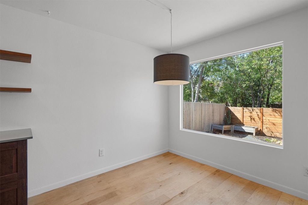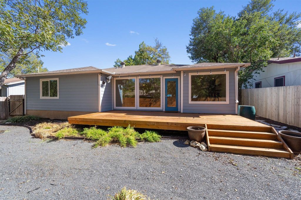 This recently remodeled home features a open concept creating spacious kitchen, living and dining areas. Beautiful large windows in the living/dining area brings in natural lighting and connects the back yard and decking to the living area. The wood style vinyl flooring brings a warmth throughout the home. The trees and open space in the back of the property provide privacy and a peaceful setting. Three bedrooms are located on the east side of the home. The primary bathroom and closet have been updated. The washer and dryer convey with the property as well as the second refrigerator located in the garage. This property is located in a prime area close to Brodie Lane shopping and easy access to Mopac.