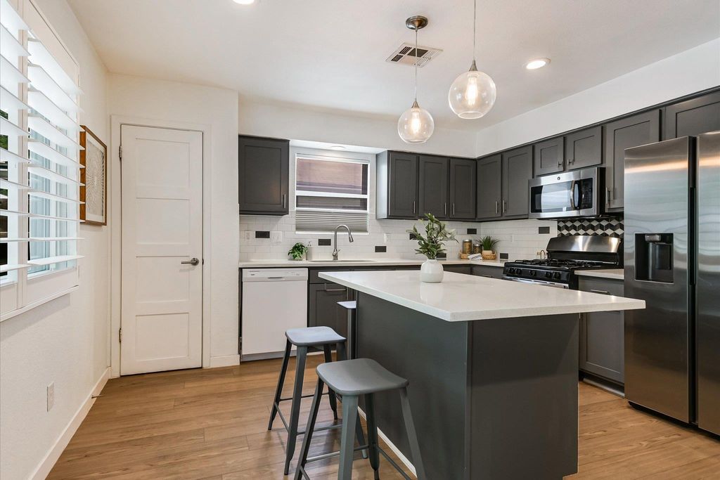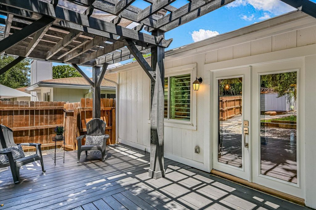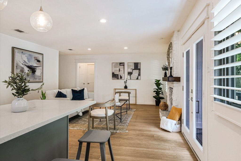 Discover your perfect retreat at 3201 Harpers Ferry Lane in the Cherry Creek area! This smartly designed 3-bedroom, 2-bathroom home spans 1,274 sq ft and sits on a generous 7,840 sq ft lot. With its open floor plan, it's the ideal home for entertaining or just unwinding at home. Some of the updates include recent Luxury Vinyl Plank floors in every room, Plantation Shutters, tile floors in the bathrooms, a refreshed kitchen with sleek quartz countertop, center island, stainless steel gas range, built-in microwave and refrigerator. The secluded primary suite with LVP floors, double vanity, quartz counter top, walk-in shower and a walk-in closet sits on the opposite side of the home as the secondary rooms. The secondary bathroom has been updated with new tile floors, quartz countertops, lighting and a new soaking bath tub with designer tile surround. Both secondary bedrooms offer beautifully designed accent walls. The Green Room with its beautiful sage green walls, decorative panels and battery powered sconces. The Murphy Room, with its space saving Murphy Bed turns an ordinary bedroom into the perfect office/guestroom combination...or you can just simply use it as a bedroom. The fully insulated garage with a dedicated AC allows for everything from an extra play area to a hobby room. Once in the back yard, the first thing you will notice are the towering trees, ample shade and cozy firepit. Everything has been artfully planned for a quiet evening under the custom pergola or a BBQ with friends on a deck that runs the entire length of the home. If outdoor activities are important, you will love being a couple of blocks from Longview Park and Stephenson Nature Preserve, with a playground, a pavilion, sports field and walking paths. Notable facts: Roof = 2017, House AC - 2020, Fridge/Washer/Dryer/Murphy Bed convey.