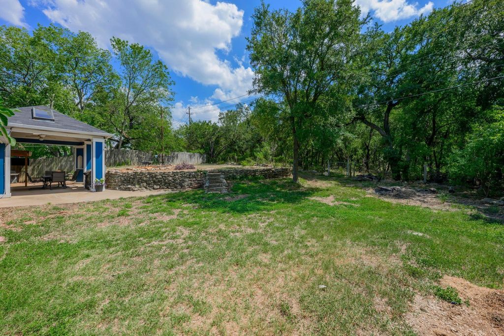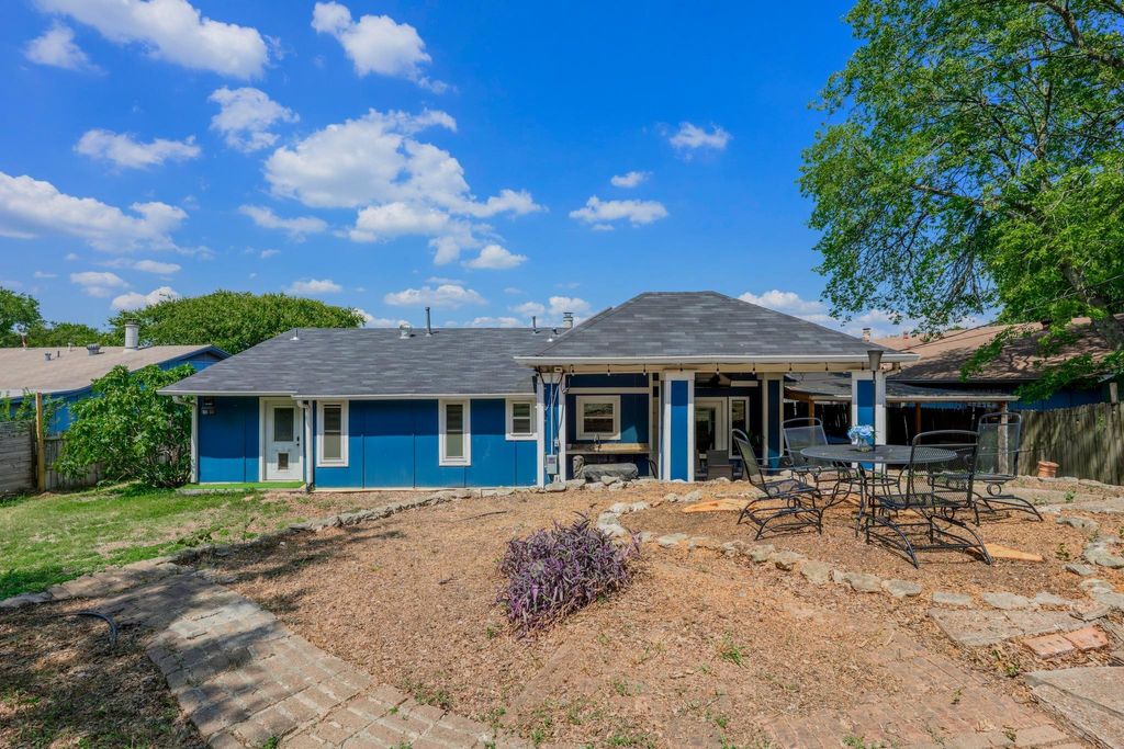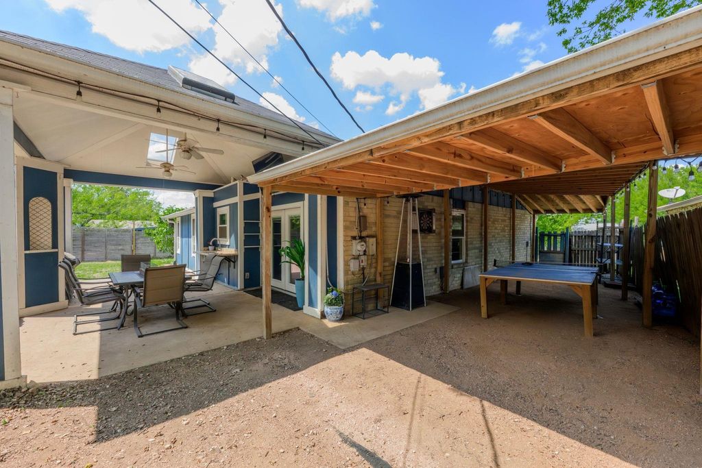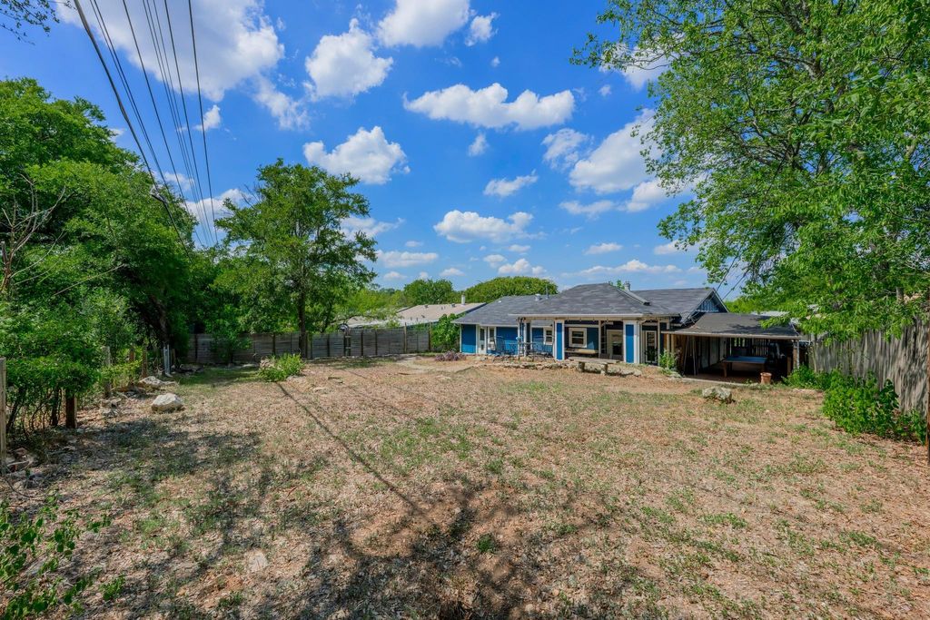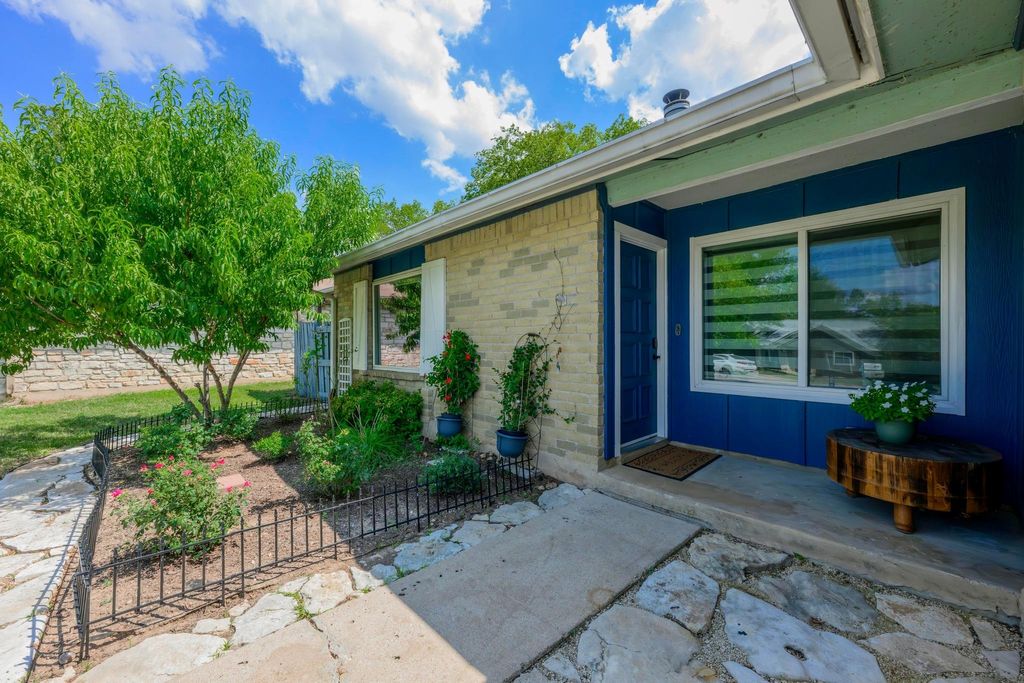 Set on a near quarter-acre picturesque lot, this renovated residence blends modern style, recreational space and tranquility in sought after Oak Plantations! This exceptional residence has 3 bedrooms, 2 full baths, a modern kitchen, an inviting living room, a luxurious primary bath, a large covered entertainment porch, a covered side porch for work or recreation, and a cool home gym! The chef will enjoy the updated kitchen with granite counters, white cabinets, newer Samsung appliances, and a walk-in pantry. This home was made for entertaining with a huge dining area, and a grand covered back porch with a built-in cook's work station and a large screen TV area, and all overlooking the enormous rolling green back yard. Every detail of the home is designed to inspire a modern and relaxed lifestyle. The living room is supremely inviting with a white brick fireplace, and a picture window overseeing the landscaped front yard. Retreat to the primary suite and a stunning wow-factor primary bath with a granite dual vanity, a lavish soaking tub, & a spacious walk-in shower. Guests will enjoy the modern white-tiled 2nd full bath & contemporary vanity. Other impeccable details of the residence include new windows, updated fixtures, recessed lighting, contemporary flooring, barn doors, all cedar closets, a modern exterior, & a newer roof, HVAC and water heater. The fantastic garage home gym is negotiable, or can be removed. The garage has a split-system AC, could be used as a media/flex room; garage SF not included in the home's 1534 SF. A true jewel of the home is the vaulted covered back porch with 2 skylights, 2 ceiling fans, and a grill area, all perfect for relaxing with a serene private view of the expansive backyard. Stellar location, less than 5 miles to DT Austin, and close to shopping, bars and restaurants! A HUGE bonus, nearby Longview Park & the 147-acre Stephenson Nature Preserve! This exceptional residence extends a living experience of vibrancy and tranquility.