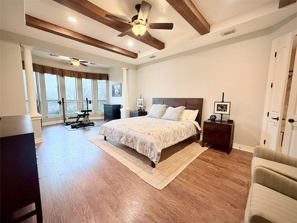 Welcome to the home of your dreams"”an elegant Mediterranean-style retreat designed for a growing, active family & crafted for years of cherished memories. Nestled within the gated community of Savannah Point on a spacious cul-de-sac lot, this stunning 4,662-square-foot residence (per appraisal) offers breathtaking views & a blend of luxury, comfort, and thoughtful detail. Inside, 4 generous bedrooms and 3.5 baths complement 5 inviting living spaces, including a game room, media room, and versatile bonus room. The chef's kitchen, featuring new granite countertops (2021), an oversized island, a GE Monogram built-in refrigerator, a 6-burner plus griddle range top, and a commercial-grade vent hood, is the heart of the home. The oversized primary suite impresses with coffered ceiling beams & space for a reading nook or exercise area, while a secluded office provides built-in desks, storage, and bookshelves. Throughout the home, reclaimed wood accents from a century-old Georgetown, Texas barn add warmth and character, and the eight-foot doors and premium finishes create a sense of grandeur. Comfort is ensured by two A/C units with multiple zones and hospital-grade Lennox PureAir Filtration systems with UV lights. Outside, the Mediterranean charm continues with a stone-and-stucco façade crowned by a Spanish tile roof, complemented by a resort-style pool (new motor 2019), an extended stone patio with built-in fireplace and grill, and a private backyard with panoramic views from the balcony. The property also features Tesla solar panels (2018), stained cedar fencing with steel posts (2018), new rear iron fencing (2024), and abundant storage options throughout, including floored attic space & custom built-ins. This exceptional home harmonizes craftsmanship, modern comfort, and timeless style in a setting that feels both private and connected! Located in one of the area's most sought-after communities, residents enjoy incredible resort-style amenities & top-rated schools!