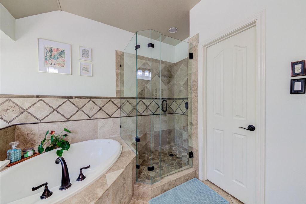 Beautifully updated Lakeway home featuring 3 bedrooms, 2.5 baths, and a 3 car garage situated on the 17th teebox of Yaupon Golf Course. Fresh paint, new landscaping, and plush new carpet give this meticulously maintained home a fresh, modern feel. Two spacious bedrooms are located on the first floor, sharing a beautifully updated full bathroom with elegant finishes. Convenient access to the 3 car garage is also on the first floor, featuring two bays with a shared bin and a third private bay with its own storage closet, perfect for a golf cart, workshop, or car. The elegant, rich wood staircase leads to the second floor, where you're greeted by stunning views of the pool and golf course. The gourmet kitchen features a Sub Zero refrigerator, stainless steel appliances, granite counters, and a breakfast bar. The primary suite on the second floor feels like a retreat, with a spa inspired bath boasting travertine tile, a frameless glass shower, and a large soaking tub. The walk in closet includes a hidden safe and built in ironing board for extra convenience. Soaring 12 foot ceilings, expansive windows, real wood floors, and a cozy fireplace create a bright, welcoming atmosphere. A formal sitting area overlooks the pool, while the open concept living and dining spaces flow seamlessly for entertaining. This home is equipped with surround sound in the main living areas, the primary bathroom, and outdoors, creating the perfect ambiance for relaxing or entertaining. It also includes a central vacuum system and a full alarm system for added ease and peace of mind. Outdoors, the backyard is a private oasis with a heated pool, spa, waterfalls, cabana with built in grill, outdoor speakers, and a lush, tree filled backdrop overlooking the golf course. Whether you're hosting friends poolside or relaxing after a day on the greens, this home delivers the perfect balance of luxury, comfort, and Hill Country charm.