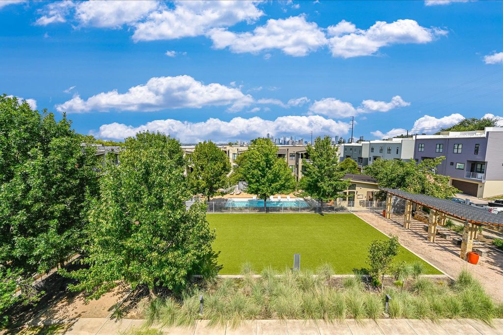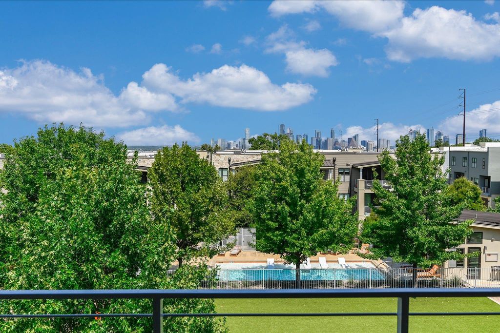 SKYLINE VIEWS FROM YOUR BALCONY! Recently updated finishes & a lifestyle upgrade in this stylishly modern end-unit condo nestled within the highly desirable Denizen community. Your freshly painted interior pairs seamlessly w/ durable hardwood flooring, upgraded recessed lighting, & a sleek stainless steel appliance package, creating the perfect backdrop for effortless entertaining or peaceful evenings in. Step outside to your private balcony or take advantage of top-tier amenities like a pool, dog park, trails, clubhouse, & community garden. Located minutes from South Congress, Zilker Park, & Downtown Austin, you'll have premier access to Austin's most iconic dining, shopping, nightlife, & outdoor experiences. Quick access to major thoroughfares makes commuting a breeze. Your open-concept layout offers endless versatility, while the spacious walk-in closet, in-unit laundry, & private garage add the everyday convenience you've been searching for"”all in one move-in ready package.