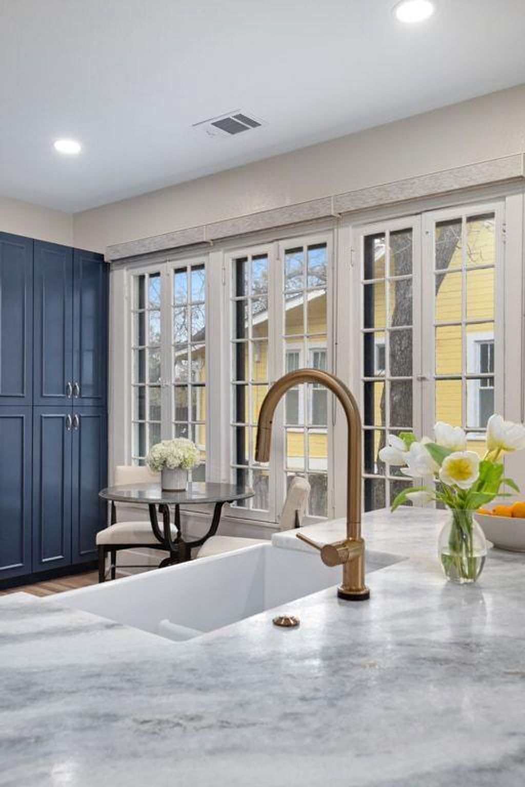 Located just minutes from the University of Texas, this 4-bedroom, 3-bath home sits under mature oaks in one of Central Austin's most walkable neighborhoods and includes a fully equipped guest apartment with its own entrance. Inside, 2-inch white oak floors and tall ceilings create a clean, timeless foundation. The renovated kitchen features all-new cabinetry, waterfall quartz countertops, a Shaw's farmhouse sink, new Samsung appliances, and a wall of windows that brings in abundant natural light. The open living and dining area is anchored by a fireplace with an electric insert and flows easily for everyday living and entertaining. The studio apartment offers excellent flexibility with a full kitchen, bath, and mini-split system, ideal for guests, rental income, a studio, or home office. The main home has electric central AC and gas central heating, along with a new hot water heater and new window shades throughout. Outdoors, the fully turfed backyard provides privacy and low-maintenance green space. Alley access leads to covered two-car parking, with the option for buyers to build a garage if desired. Landscaping was thoughtfully designed and installed by Betsy Clements. Step outside and you're moments from the Shoal Creek Trail, downtown bike routes, UT games, and neighborhood favorites like Nori, Texas French Bread, and Via 313. Zoned to Bryker Woods Elementary, this home delivers classic Central Austin living with modern updates and meaningful versatility.